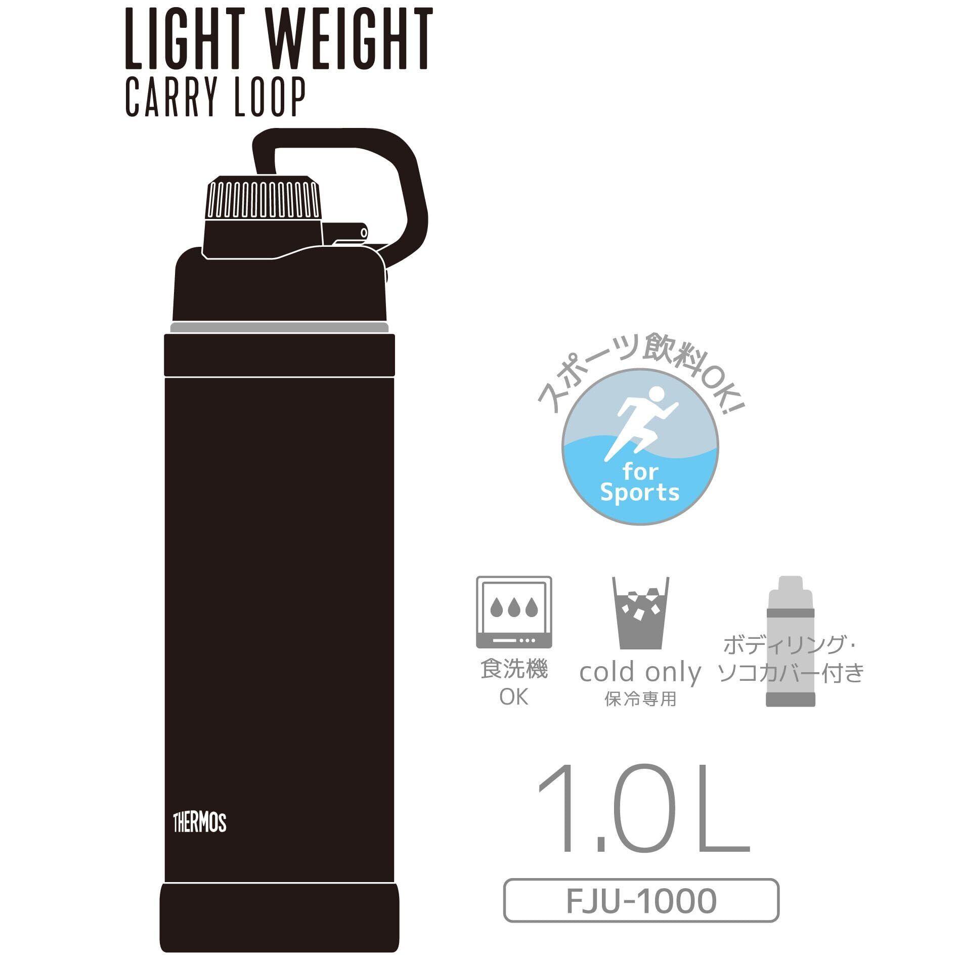 サーモス 水筒 真空断熱スポーツボトル 1L ブラック 持ち運びに便利なキャリーループ 直飲み 飲み口が外せて洗いやすい 保冷専用 FJU-1000 BK