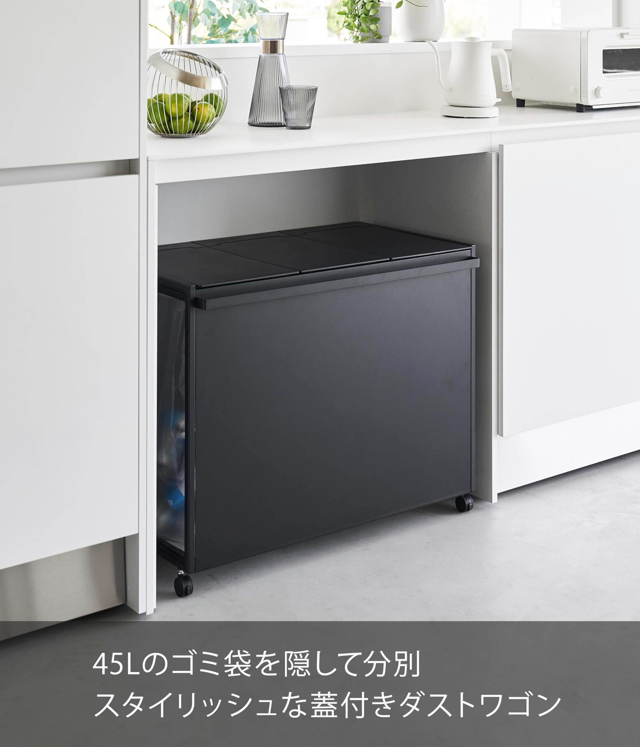 45Lのゴミ袋を隠して分別できるスタイリッシュな蓋付き分別ダストワゴン。