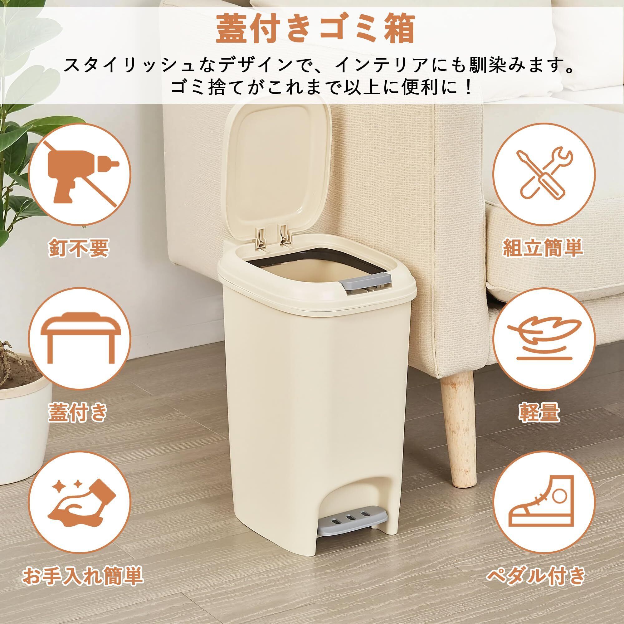【匂い漏れを防ぐフタ付き構造】: この蓋付きゴミ箱はしっかり閉まるフタ付き構造で、嫌な臭いを外に漏らさず、快適な空間を保てます。この蓋付きゴミ箱は密閉型のフタがゴミの臭いをしっかりブロックします。