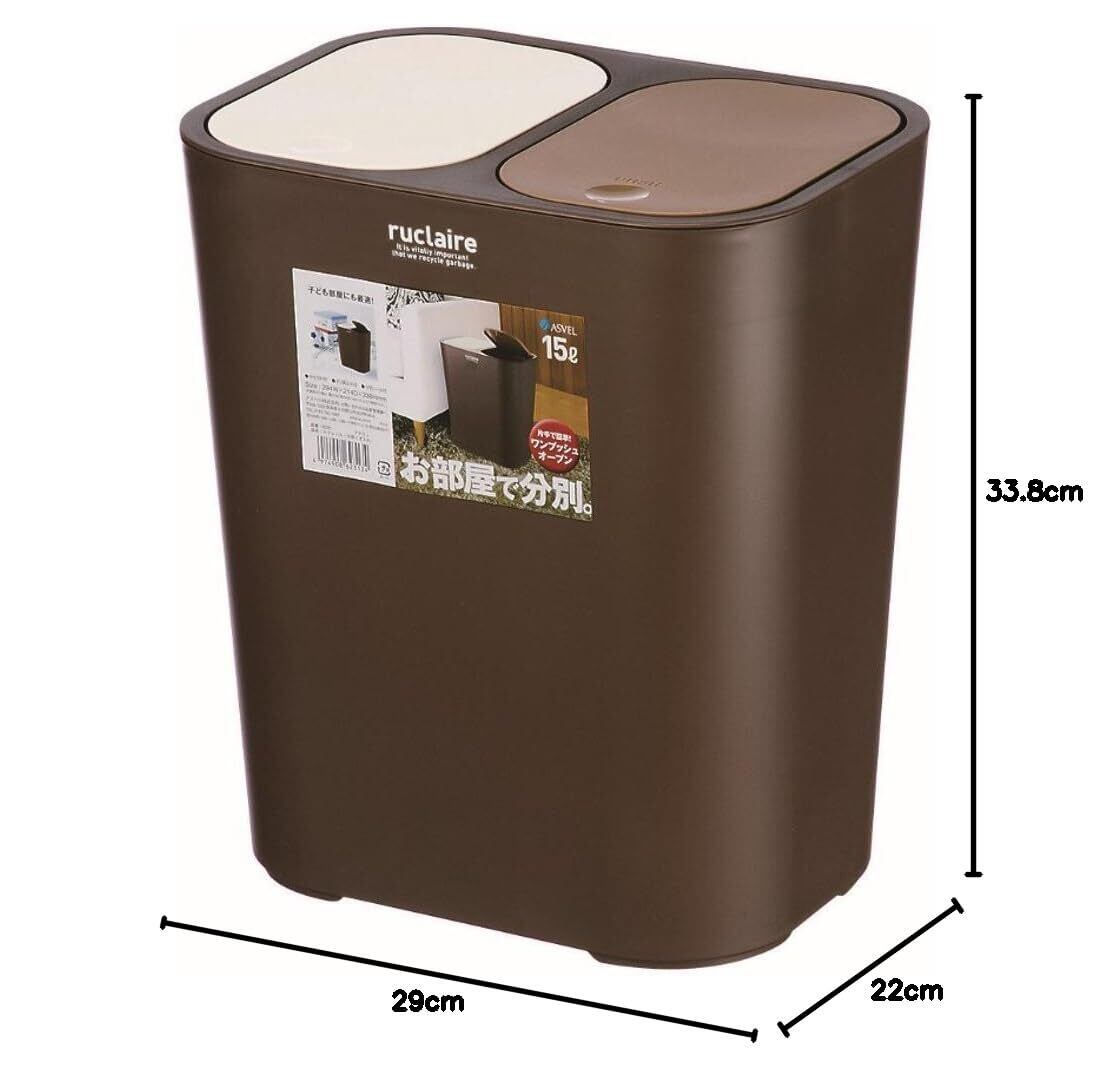 アスベル ポリプロピレン 分別屑入れ15L ブラウン