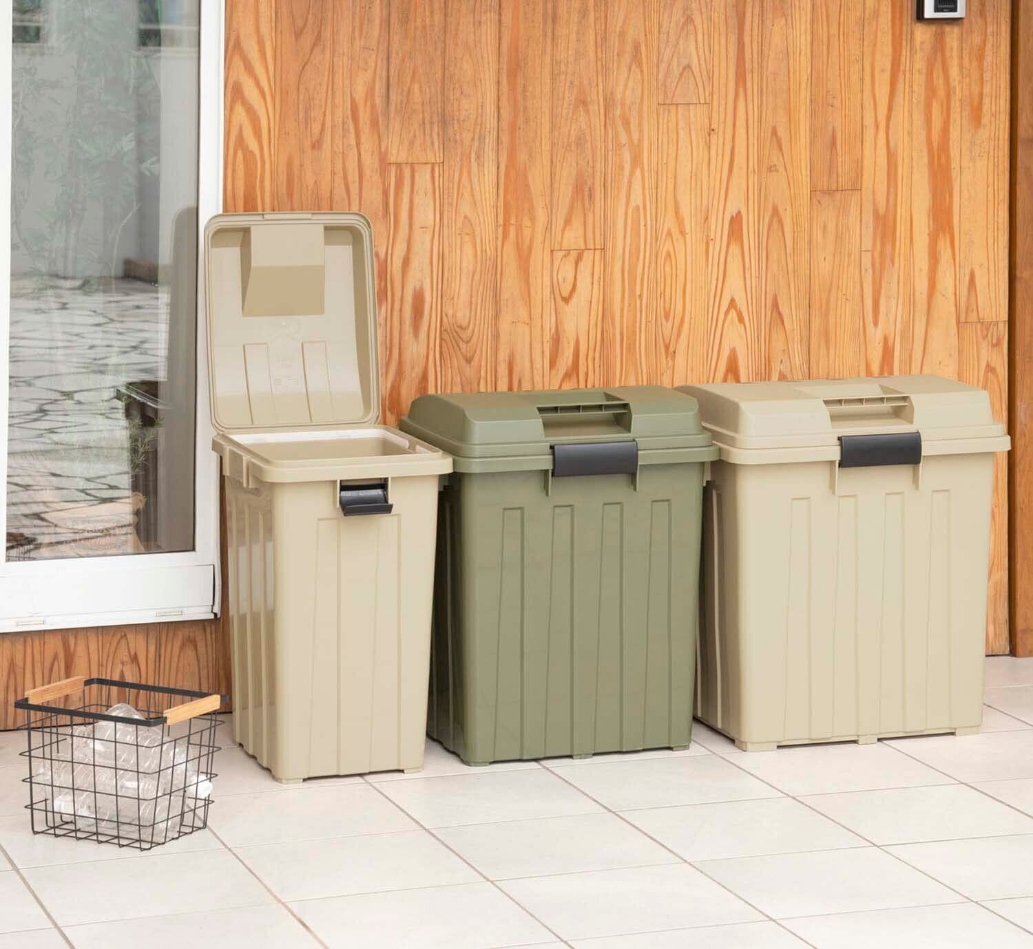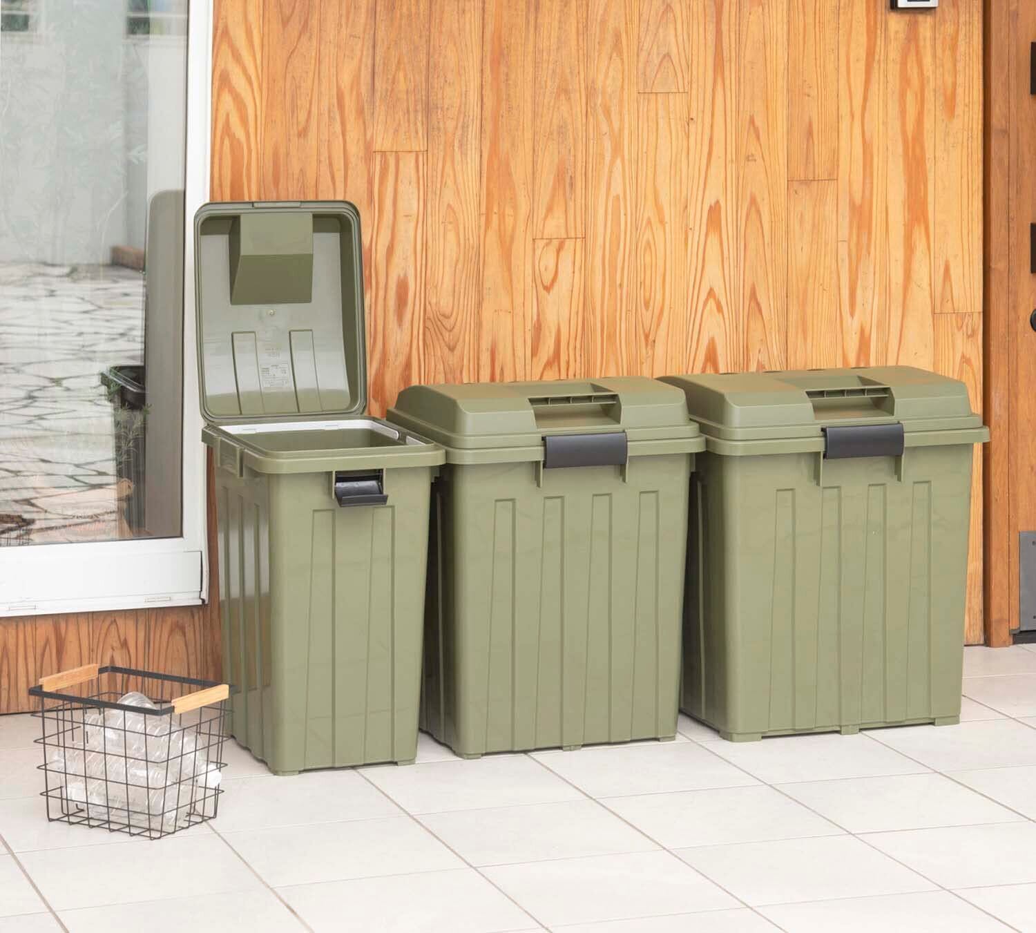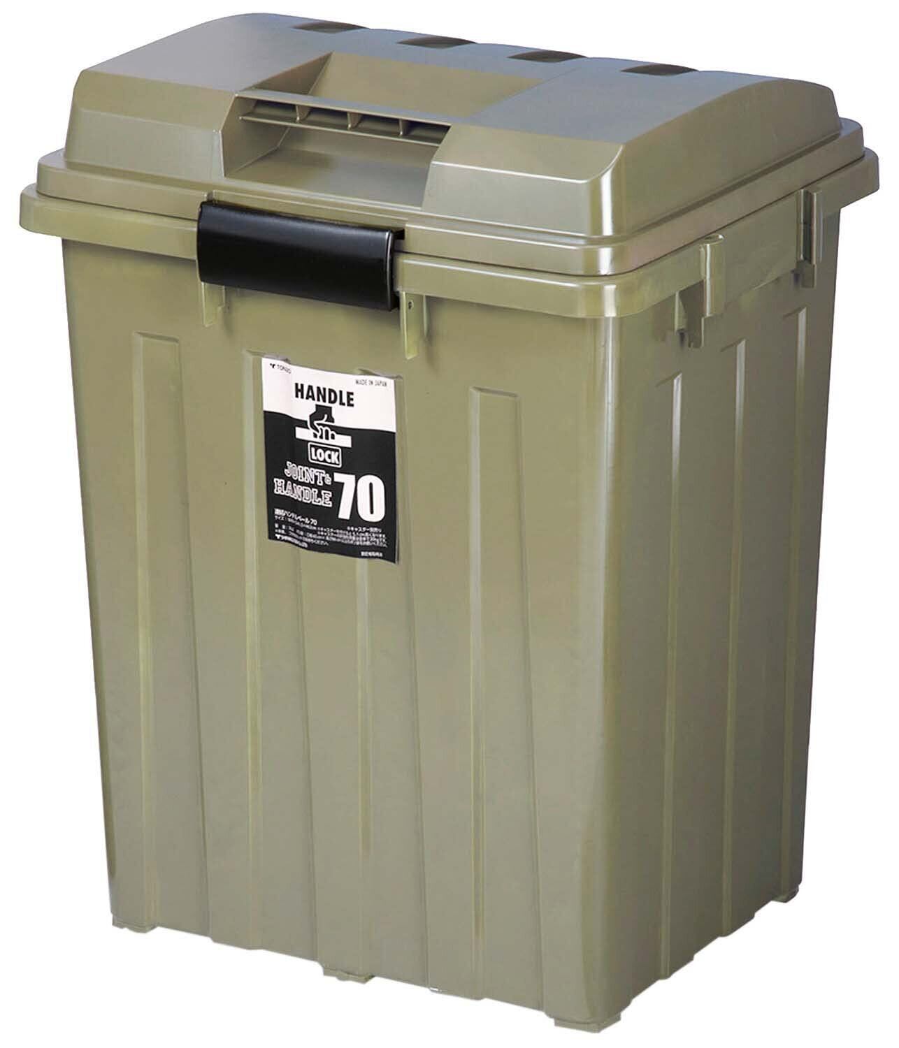 新輝合成 トンボ ゴミ箱 連結可能 ハンドル付 70リットル カーキグリーン 幅49×奥行41.5×高さ62cm 蓋付き 分別 丈夫 屋外 ベランダ 大きい アウトドア 日本製 | 毎日発送✿はなまる