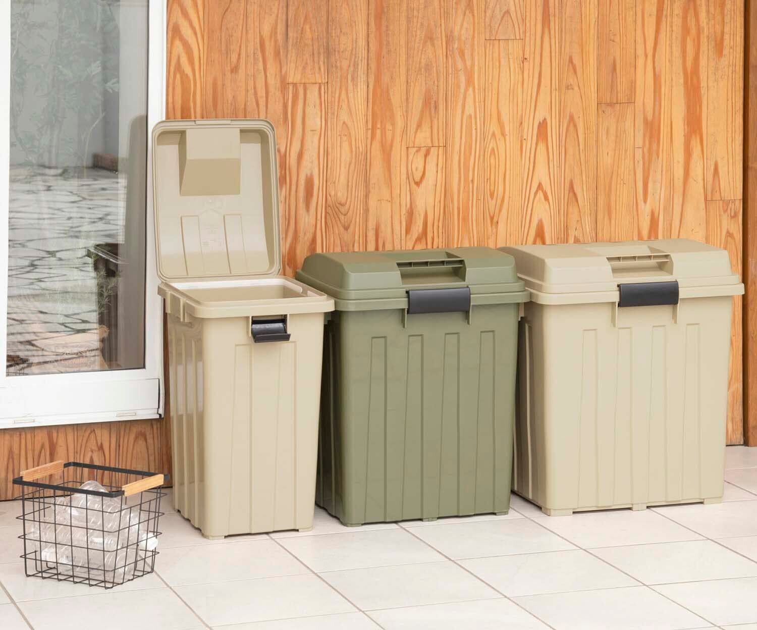 新輝合成 トンボ ゴミ箱 連結可能 ハンドル付 90リットル カーキ 幅54×奥行46.5×高さ62cm 蓋付き 分別 丈夫 屋外 ベランダ 大きい アウトドア 日本製