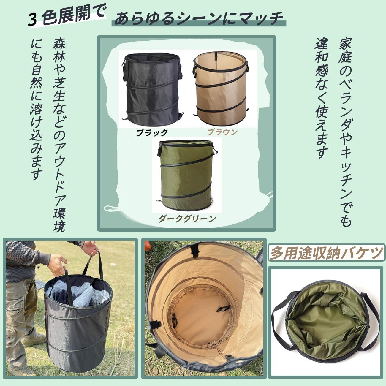 Natiform キャンプ ゴミ箱 折りたたみ ゴミ袋付き ガーデン バッグ (ダークグリーン, S (45×55cm)37L)