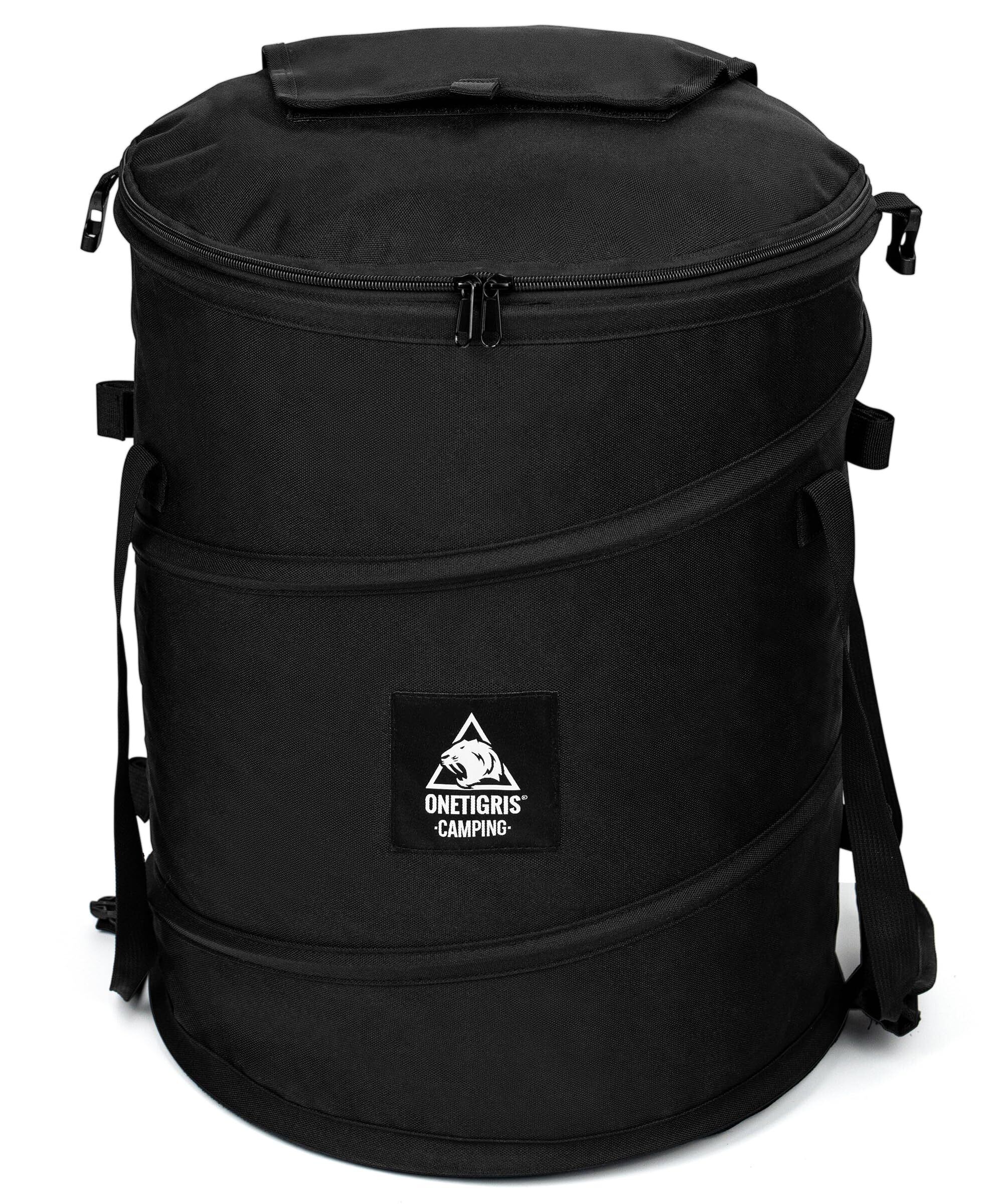 OneTigris キャンプゴミ箱 45L アウトドアギアボックス 自立型 ソフト ポップアップ 折りたたみ式 蓋付き ゴミ分別可能 防水ボトム 撥水 ペグ打つ可能 風に強い 多機能 ブラック