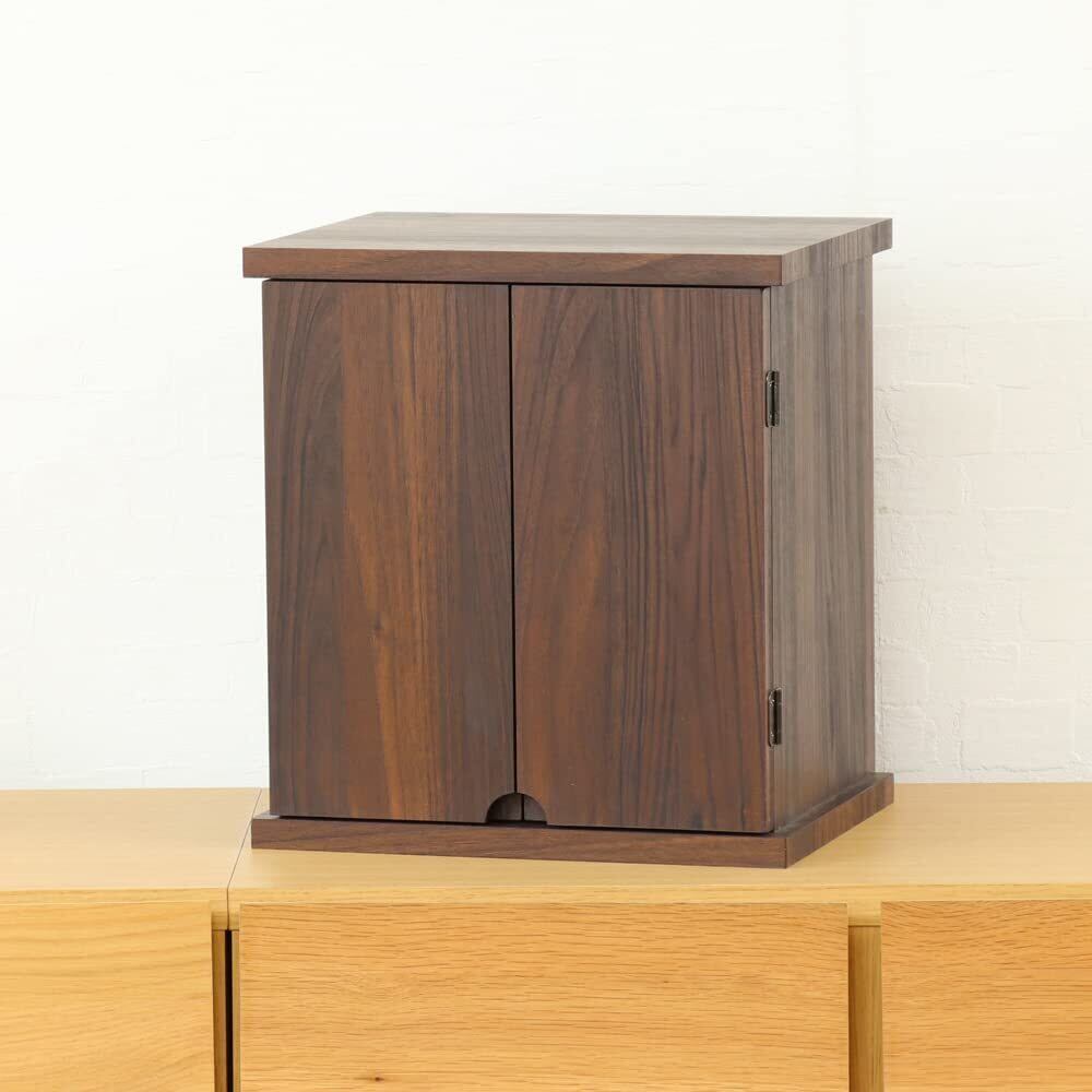 【サイズ】外寸:幅33cm×奥行26cm×高さ36cm 本尊台サイズ:幅27cm×奥行14cm×高さ4cm 【材質】主材:MDF(集成材) ウォールナット色プリント 【重量】6.5kg