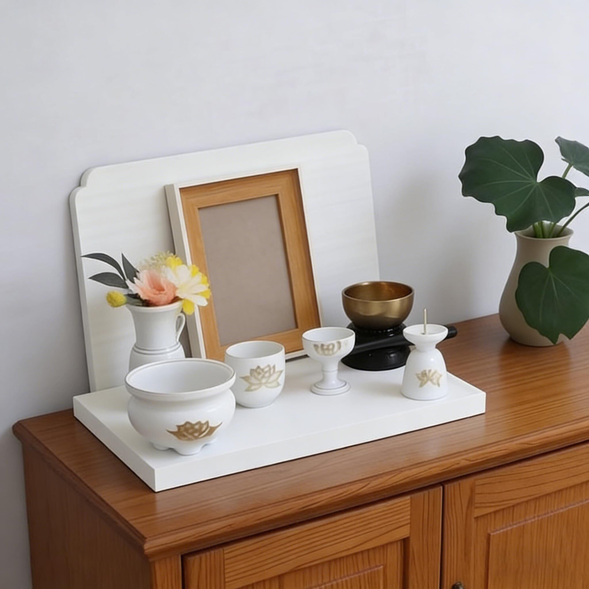 シンプルなデザインで、洋室や和室、リビングなど場所を選ばないオプーン型のミニ仏壇。