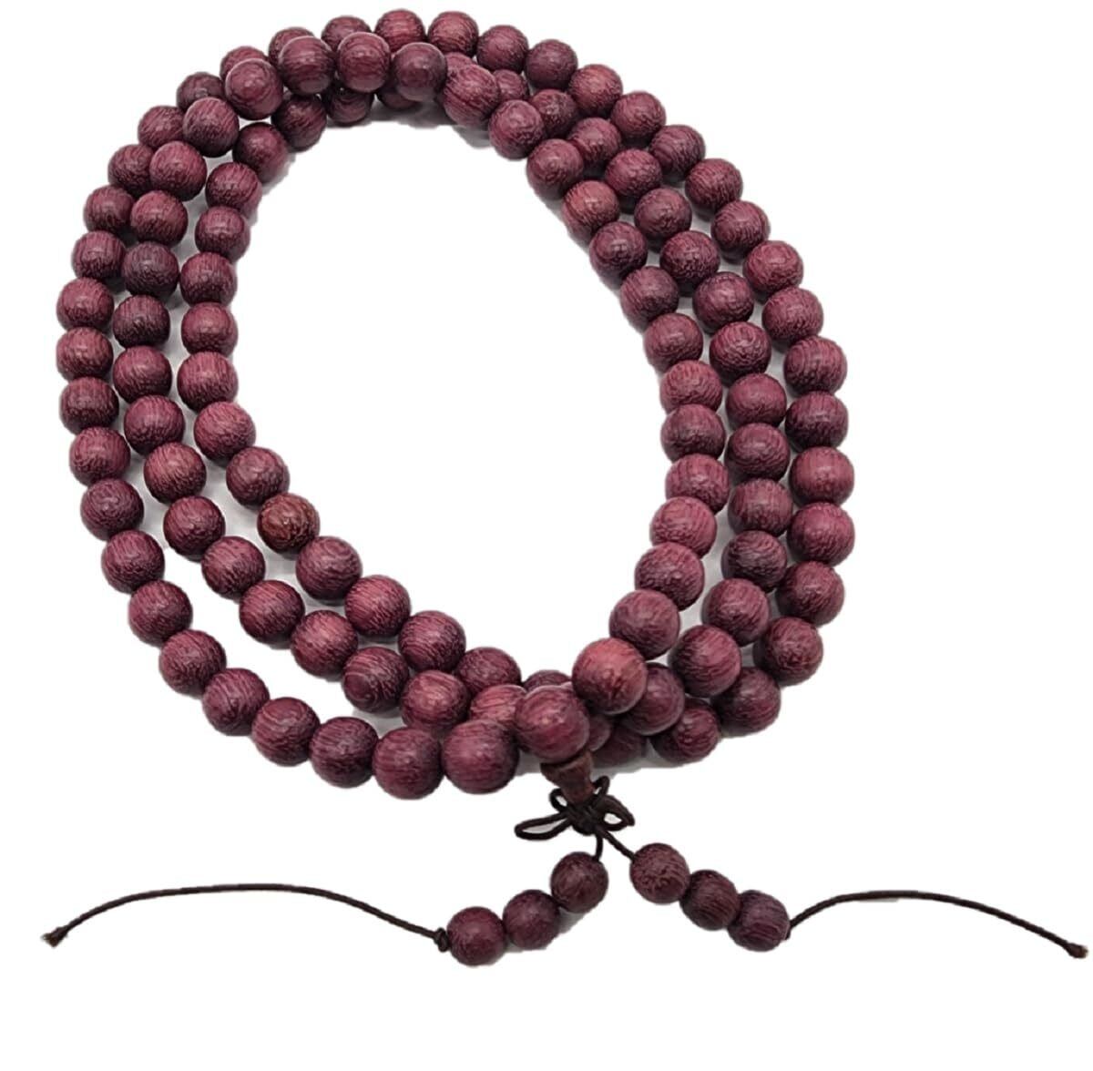 数珠ネックレス 紫 木製 天然ローズウッド 直径10mm×108珠 全長110cm ブラジリアンバイオレット パープル