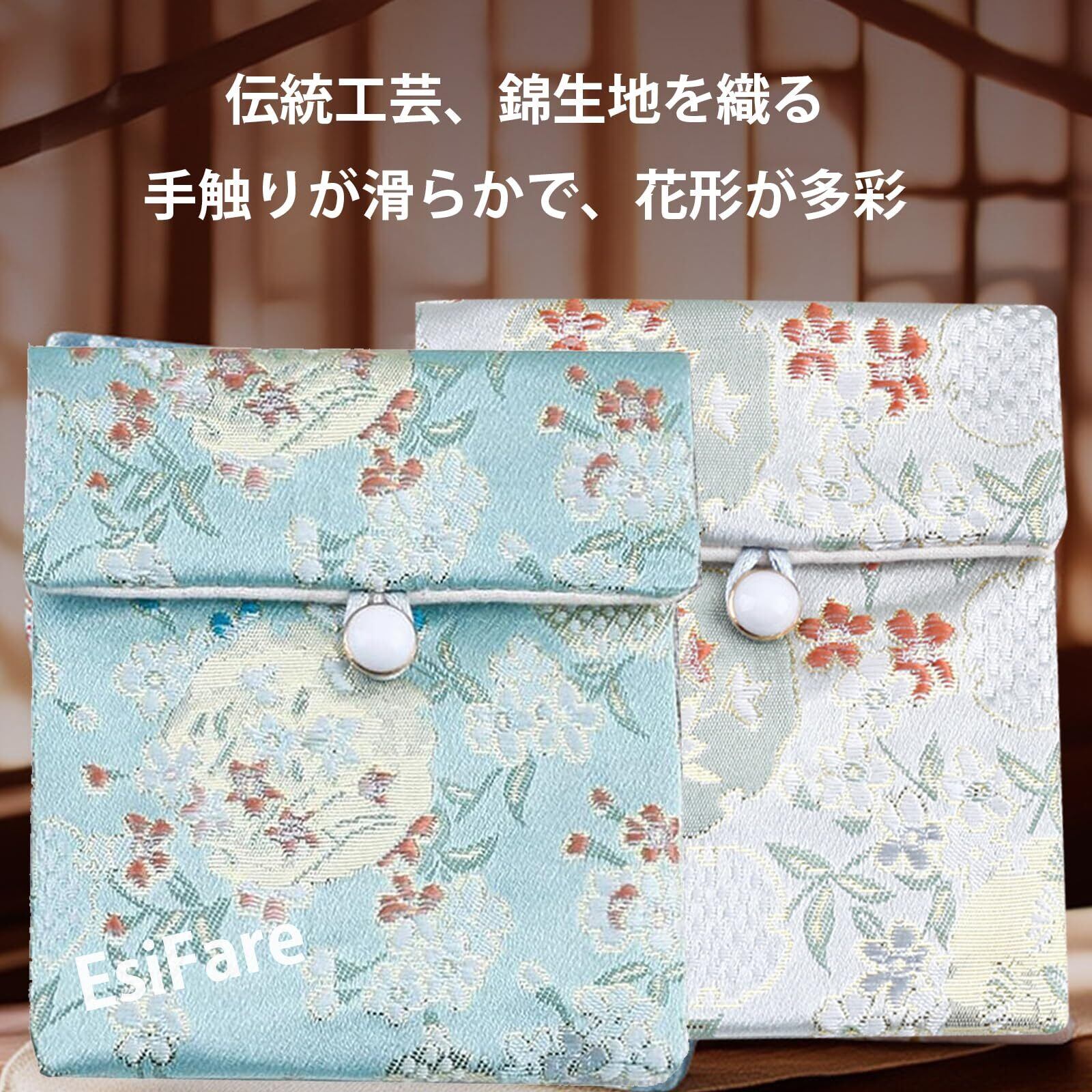数珠袋 おしゃれ 女性 数珠入れ 女性用 念珠袋 9*10.5cm パワーストーン 念珠入れ 和柄 緑 誕生石 収納ケース ブレスレット 持ち運び 和風高級 御念珠入れ 小物 小銭入れ (ホワイト+ブルー) | 毎日発送✿はなまる