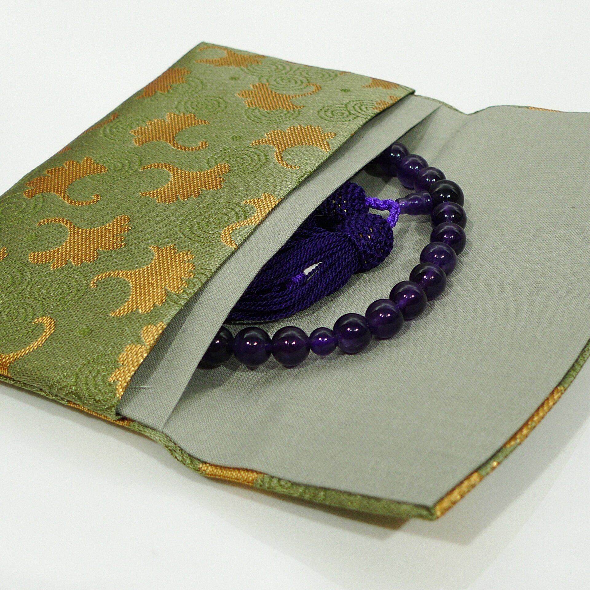 高級 御念珠入れ カラー選択可 念珠 数珠 袋 ポーチ 数珠入れ (緑)