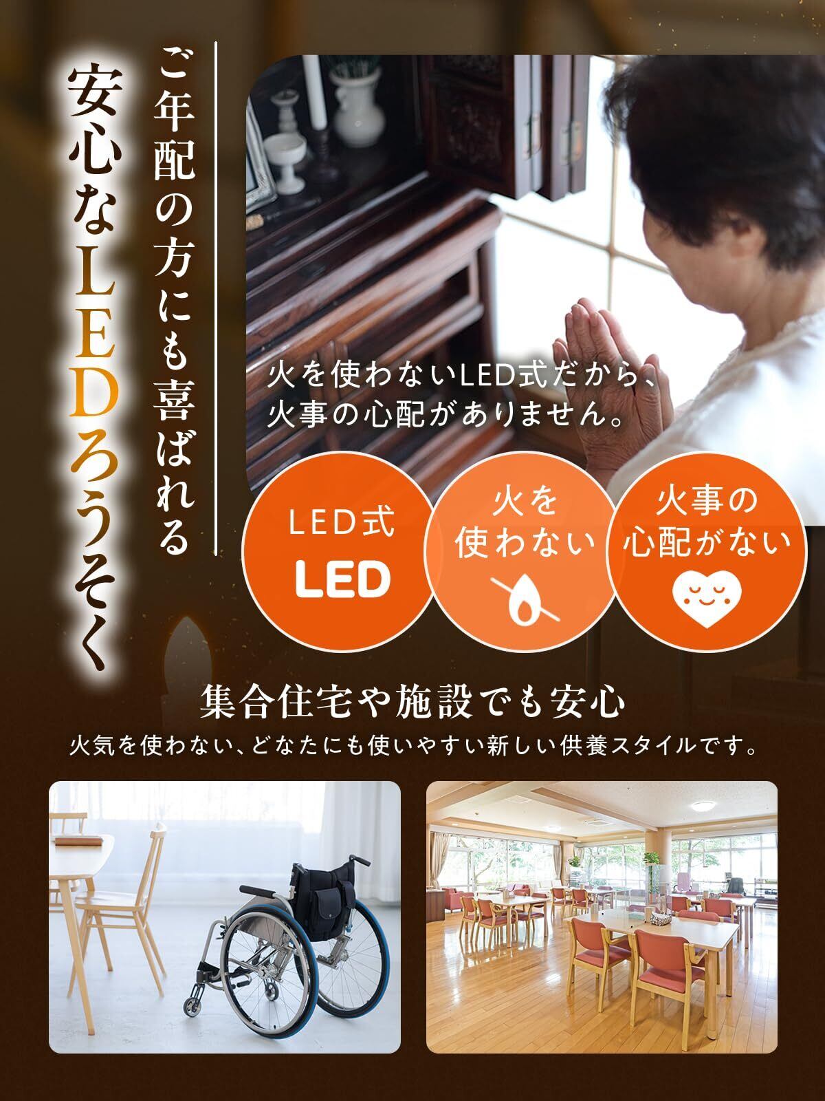 (火事の心配を安心に)LEDロウソクは火を使わないので、火事や火傷の心配を減らせます。仏壇の蠟燭や線香が原因となる火災が発生しています。(消防庁発表)