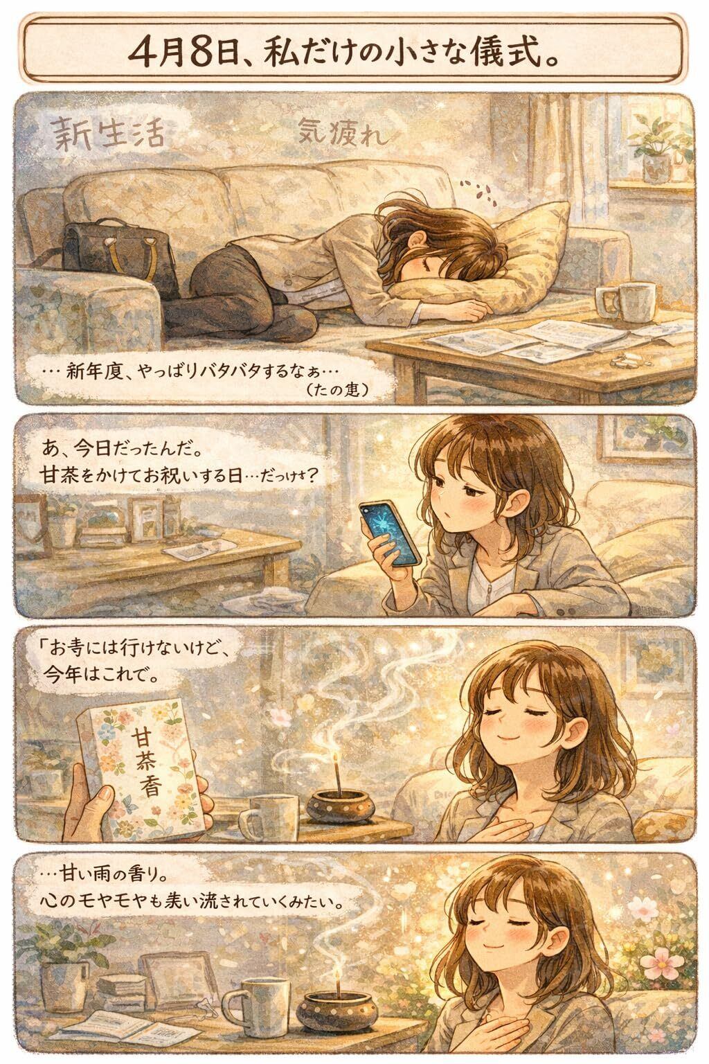 このお香は、「良い切り替え」のために焚くものです。 香りを楽しむためのものではありません。 日本で古くから受け継がれてきた、 心と空間を整えるための静かな習慣です。 日本では、お香は単なる香りではなく、 日々の穢れや知らずについた滞りを払い、 心を整えるために使われてきました。 朝の始まり、夜の切り替え、人生の節目。 香を焚くことは、自分自身と向き合い、 流れを正すための静かな儀式とされています。 このお香は、 そうした日本の精神文化に基づいて選ばれています。 淡路梅薫堂の甘茶香は、 仏様の好物とされる甘茶を原料に用いたお線香です。 甘茶は、4月8日の花祭りにおいて お釈迦様の誕生を祝う際、誕生仏に注がれる甘露に例えられ、 浄めと祝福の象徴とされてきました。 そのため甘茶香は、 厄除け・魔除け・運を開く香として、 古くから人生の節目や大切な行事に用いられています。 このお香は、嗜好品ではなく献上のためのお線香です。 まずは仏様やご先祖様へ、 好物である甘茶の香を美しく供え、 感謝と敬意を尽くす。 そのお下がりとして香をいただくことで、 心が整い、自然と良い流れが巡る。 これが、日本に伝わる 「仏様のご馳走」という考え方です。 ご使用の場面 ・厄年や節分など、流れを変えたいとき ・年越し、新年、人生の節目 ・仏壇や神棚への感謝と祈り ・お盆など、ご先祖様を迎えるとき 静かな儀式として、 心を整える時間にお使いください。