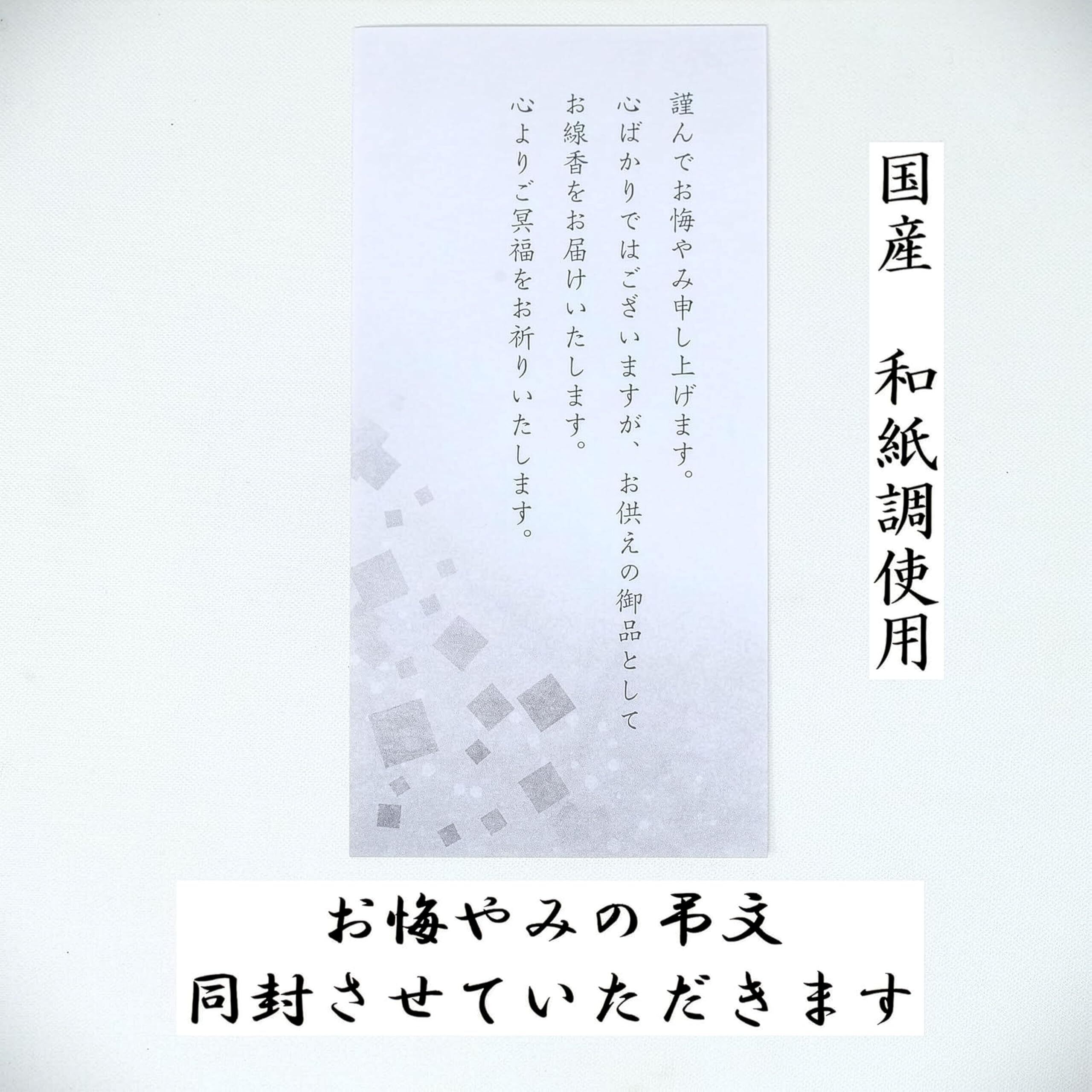 お悔やみの弔文付き。包装の内側に同封しております。ご安心ください。