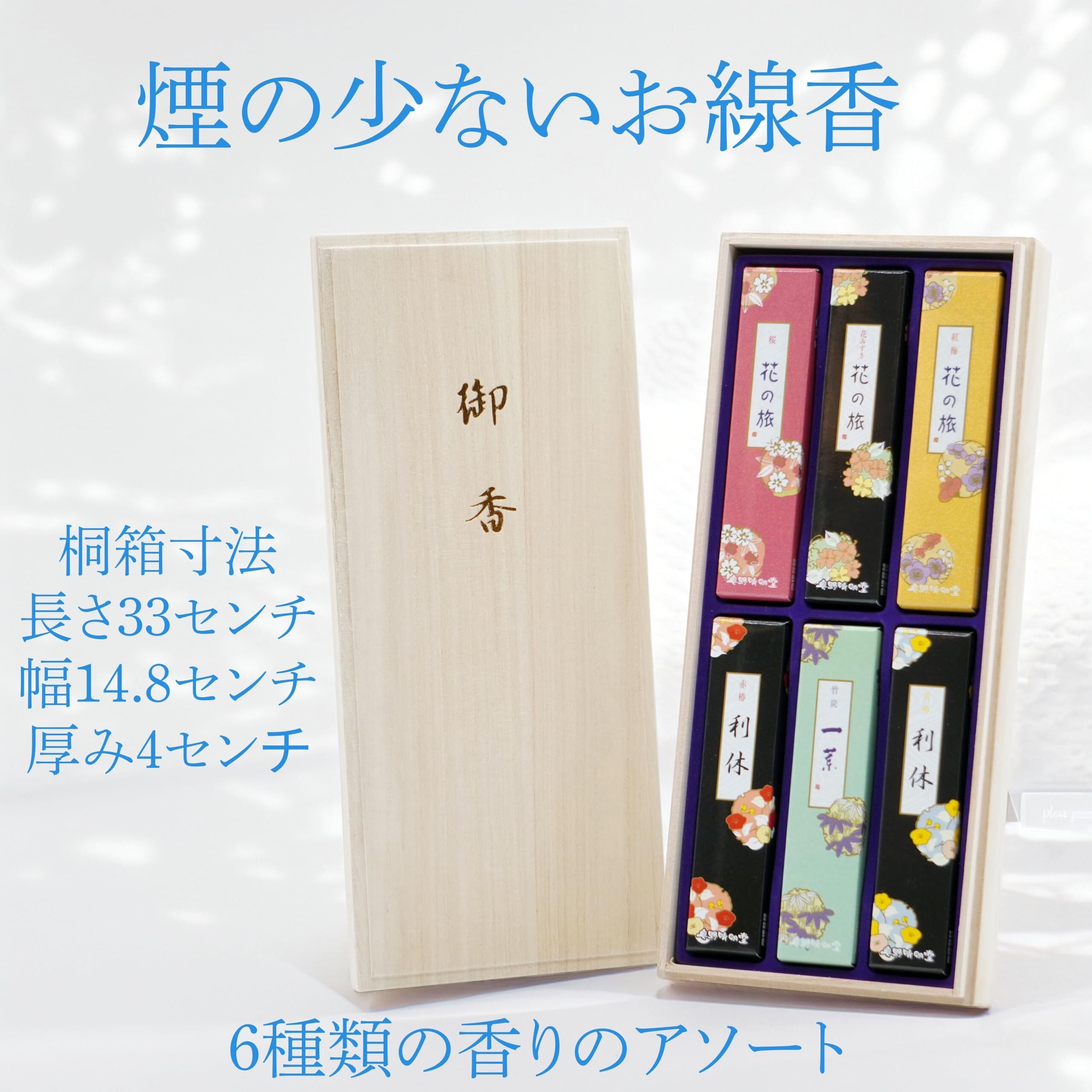 お線香セット 極少煙タイプのお線香 桐箱入り 御供入り熨斗付き お盆・喪中・喪中御見舞・進物・贈り物・贈答用線香