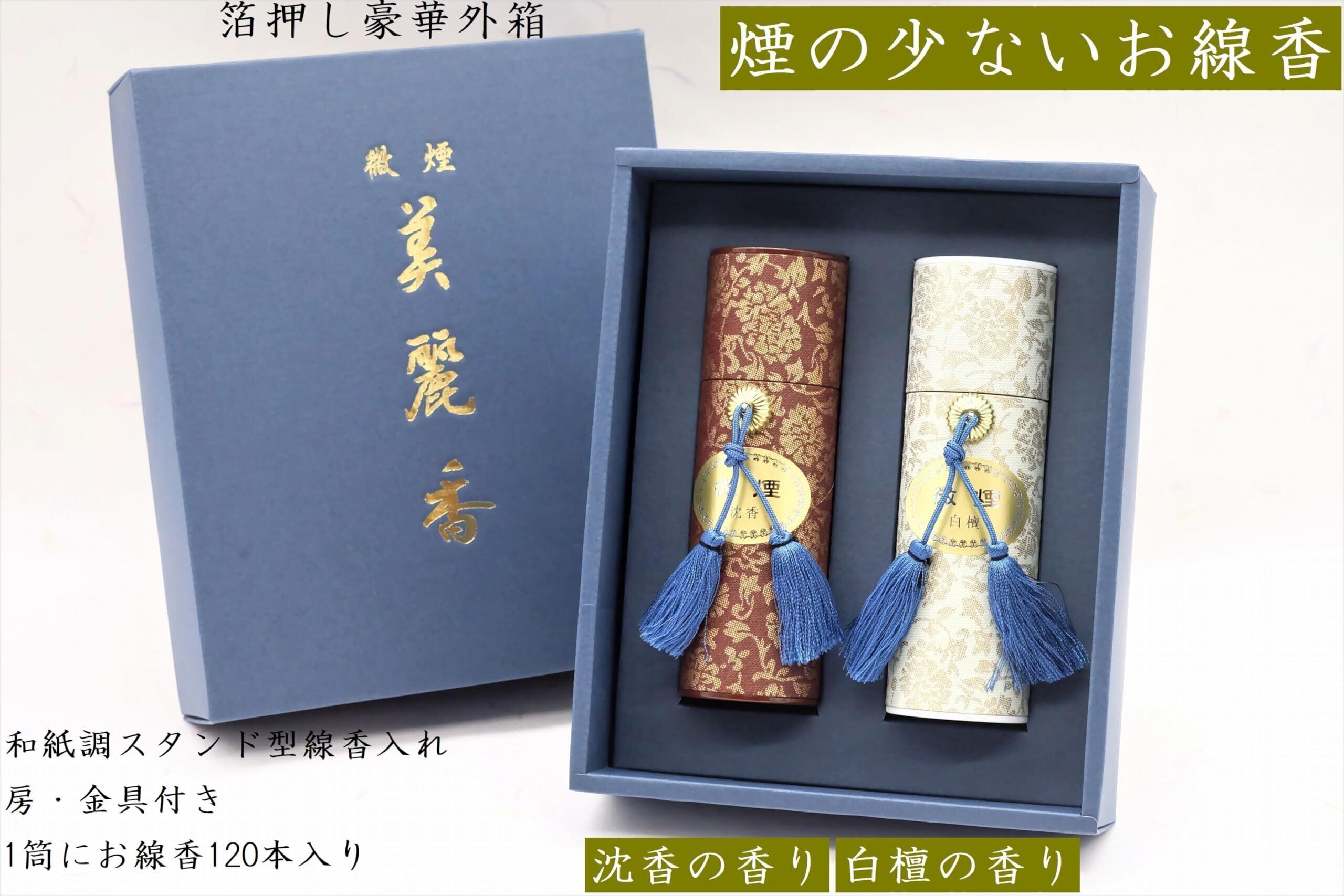 お線香セット 白檀・沈香の香り 煙の少ないお線香 包装・御供熨斗 お盆・喪中・新盆・喪中御見舞・ギフト・ 進物・贈答用線香 made in japan