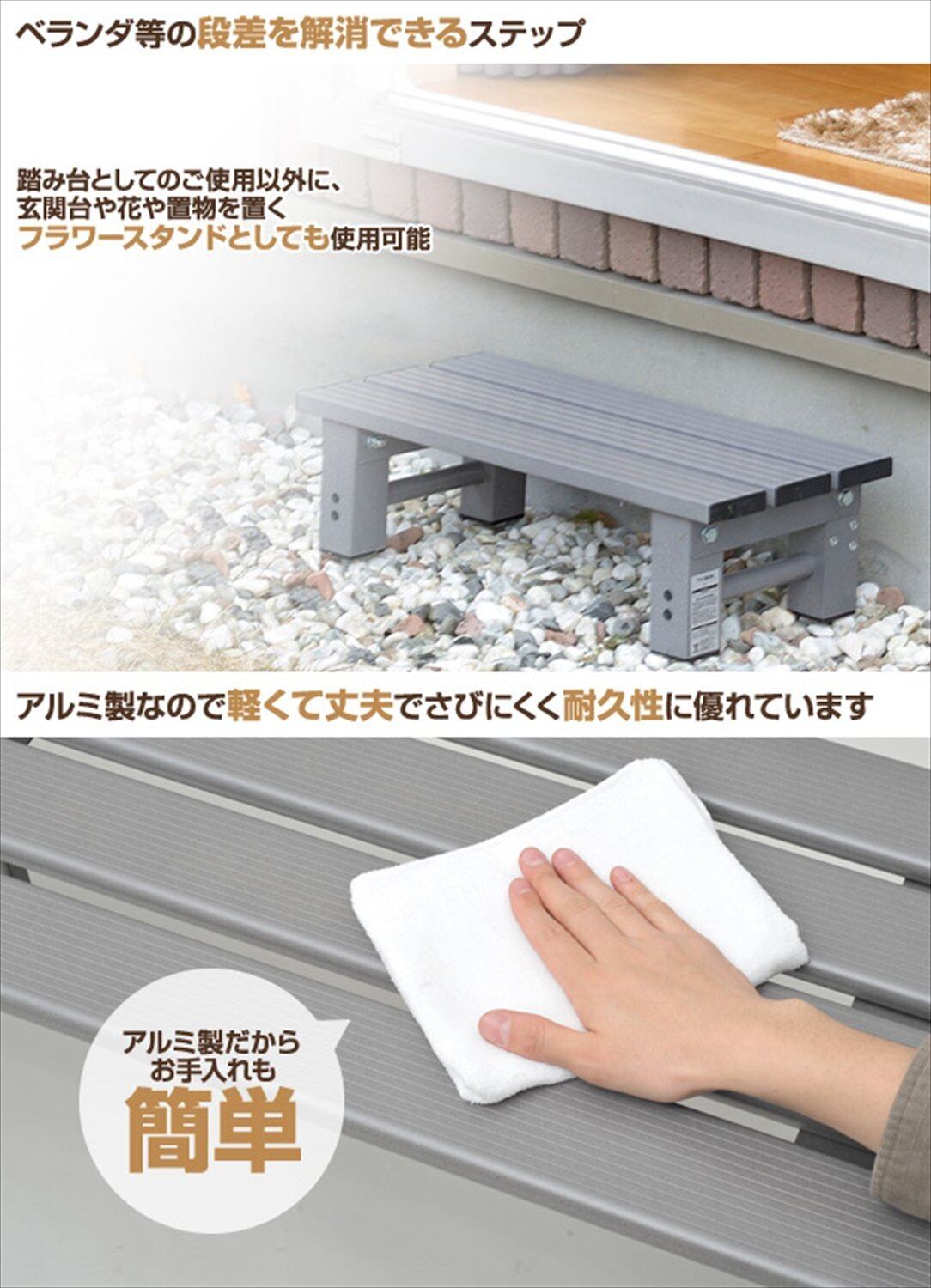 ガーデンマスター(Gardenmaster) アルミ踏み台1段 幅54×奥行26.5×高さ17cm 玄関台 バルコニー ベランダ デッキ 縁台 段差解消 介護 フラワースタンド ガーデンマスター グレー YM-540S | 毎日発送✿はなまる