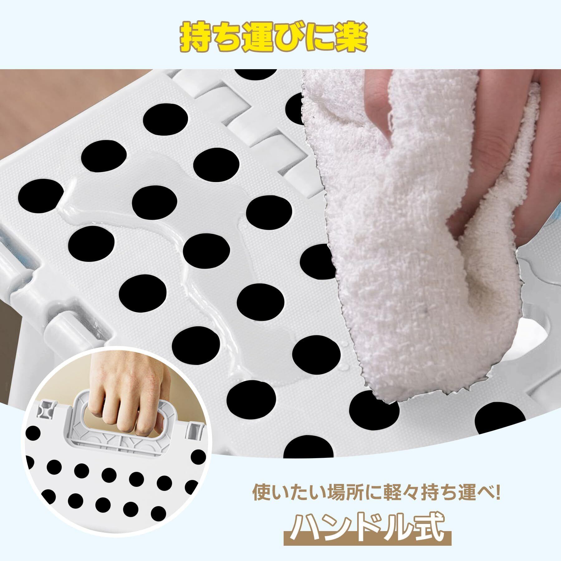 【滑り止め付き】 踏み台部分と脚裏には滑り止めが付いているため、昇り降りするときも安心してご使用いただけます。天板の角が丸みを带ひているため、お家族も安心してご使用いただけます。