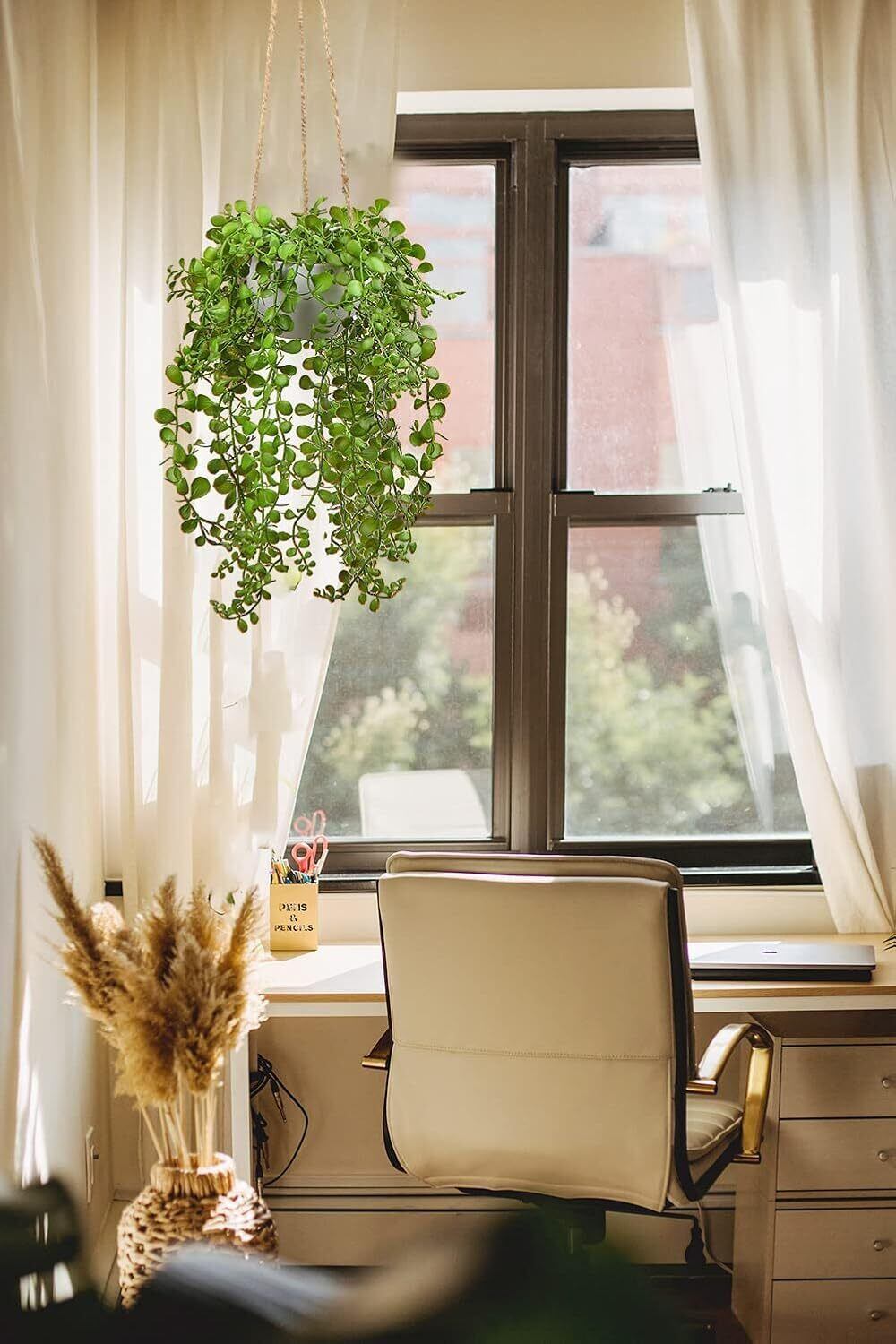 【仕様&高品質】グリーンの長さ:35CM。豊かな緑のハンギング植物はPE材質を採用しており、リアルな質感が特徴です。葉の形状や色合いは、本物の植物を思わせる自然なデザインになっており、どんなインテリアにもよく合います。
