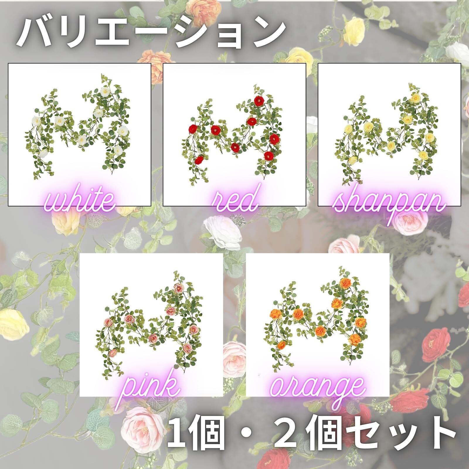 リアルな美しさと手軽さを兼ねそろえたリアル造花。長さ約178メートル、様々なカラーのバラが美しく配置された人工バラの藤。自然のバラの鮮やかさを再現し、部屋やイベント空間にエレガントな雰囲気を演出します。複数本の組み合わせで、さらに華やかなデコレーションが可能な観葉植物です。