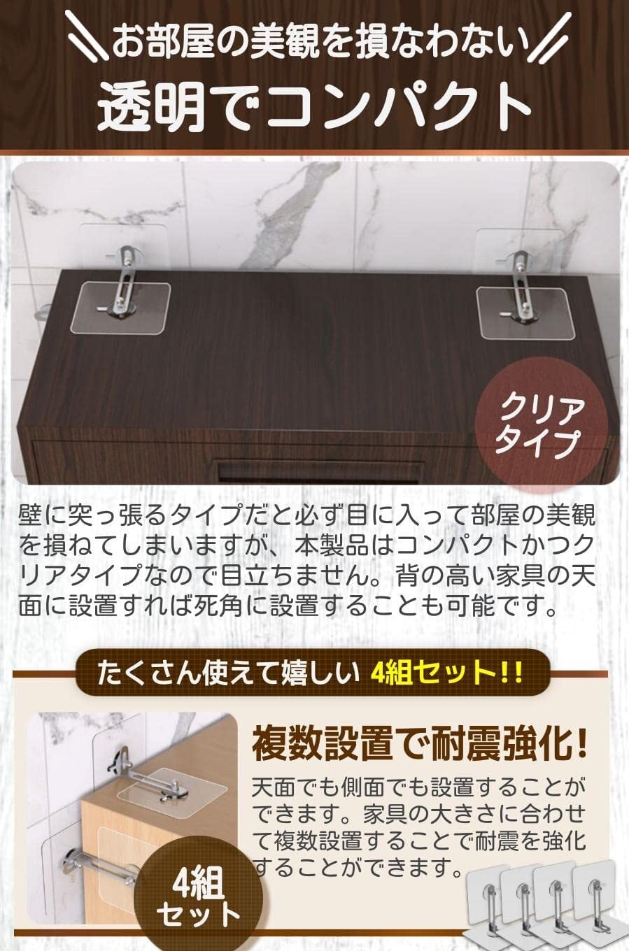 fogman 家具 転倒防止 穴開け不要 目立たない クリア 金具 棚 賃貸 地震対策 4組セット (金具6cm)