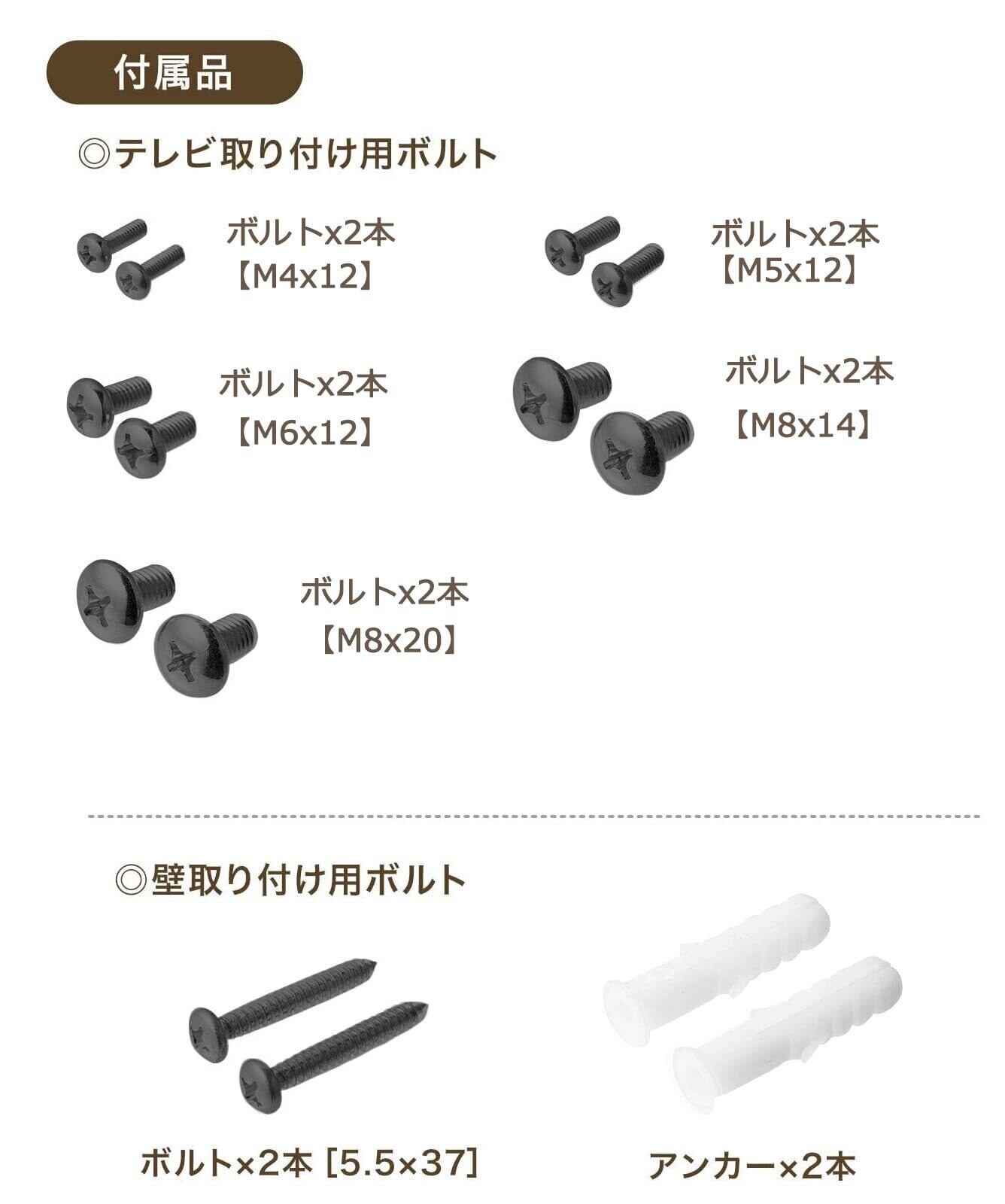 【付属品】耐震ベルト本体×1、ボルトM4X12mm 2本ずつ、ボルトM5X12mm 2本ずつ、ボルトM6X12mm 2本ずつ、ボルトM8X14mm 2本ずつ、ボルトM8X20mm 2本ずつ、壁面用ネジ4X25mm 2個、アンカー×2、ワッシャー (M4)各2本ずつ、取扱説明書(日本語)×1,取り付け環境に応じて、適切なネジを選択してください。