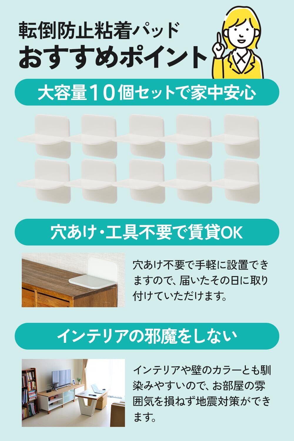 家具転倒防止 耐震ストッパー 家具転倒防止器具 穴あけ不要 ジェルマット付 10個セット 耐震グッズ