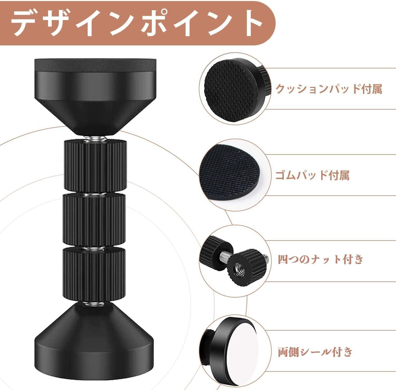 耐震ポール 突っ張り棒 ツッパリ棒 揺れ防止 取付高さ6.5cm~12cm 調整可 狭い隙間用 防災グッズ 地震対策 家具転倒防止 冷蔵庫 棚本 家具固定 両面テープ付き 2本セット (ブラック) | 毎日発送✿はなまる