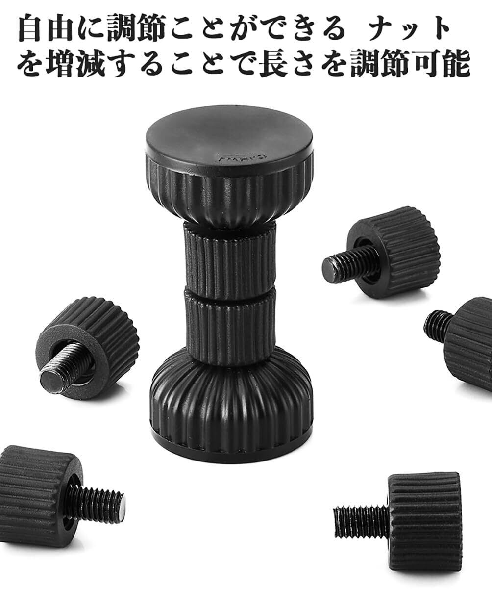 突っ張り棒12cm:4つのナットを追加すると、ねじが完全に露出した状態で最大長は12㎝になります。必要に応じて自由に調整ができます