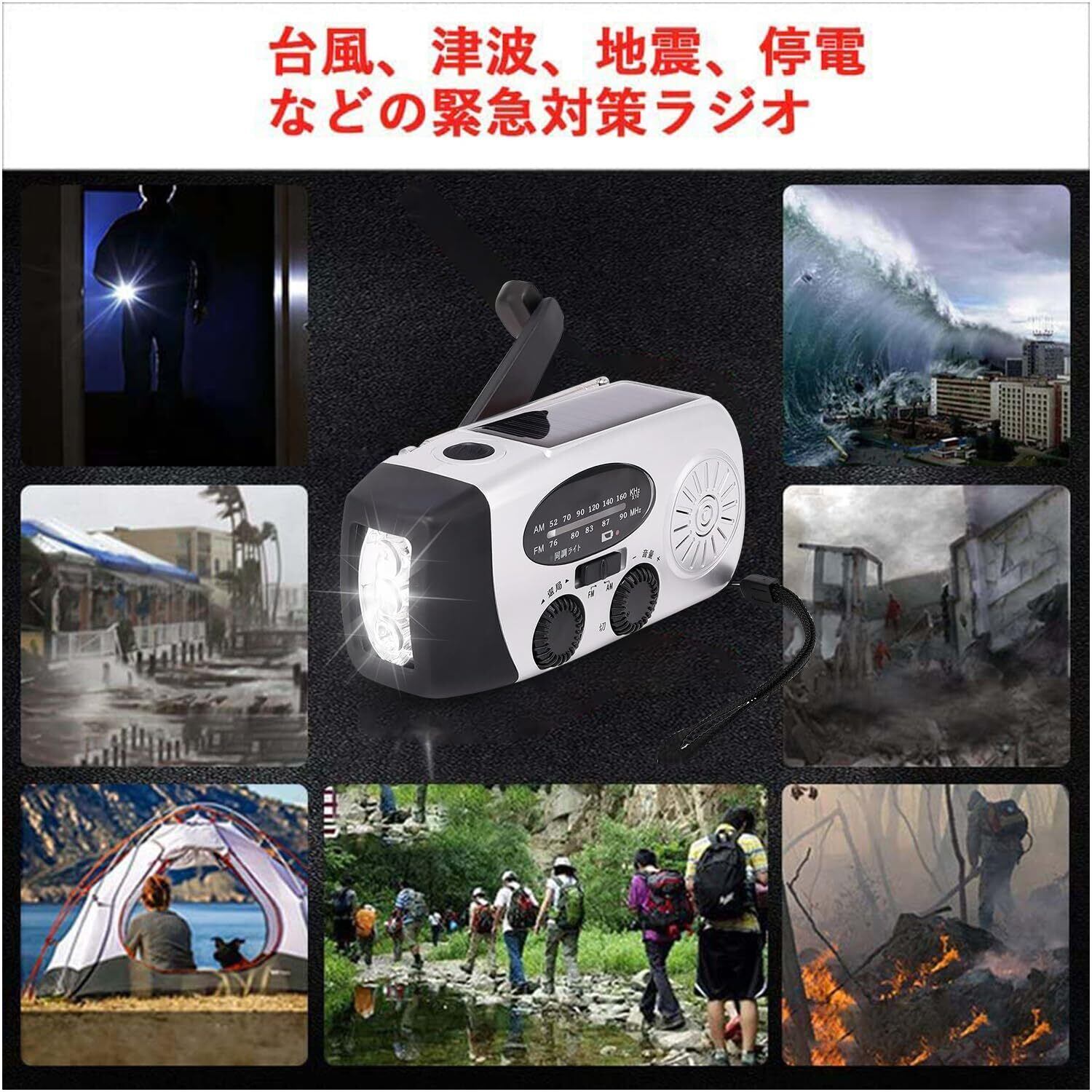 【種類の充電方法で安心】2000mAhの高容量リチウム電池を内蔵し、安全性と長寿命を実現。3つの充電方法をサポート:ソーラー充電:太陽光で自動充電; 手回し充電:1分間のハンドル回転で、15〜20分のライト使用や5〜20のラジオ使用が可能。USB充電:最速かつ効率的な充電方法。充電中はパネルのバッテリーインジケーターが赤く点灯し、充電状態を一目で確認できます。