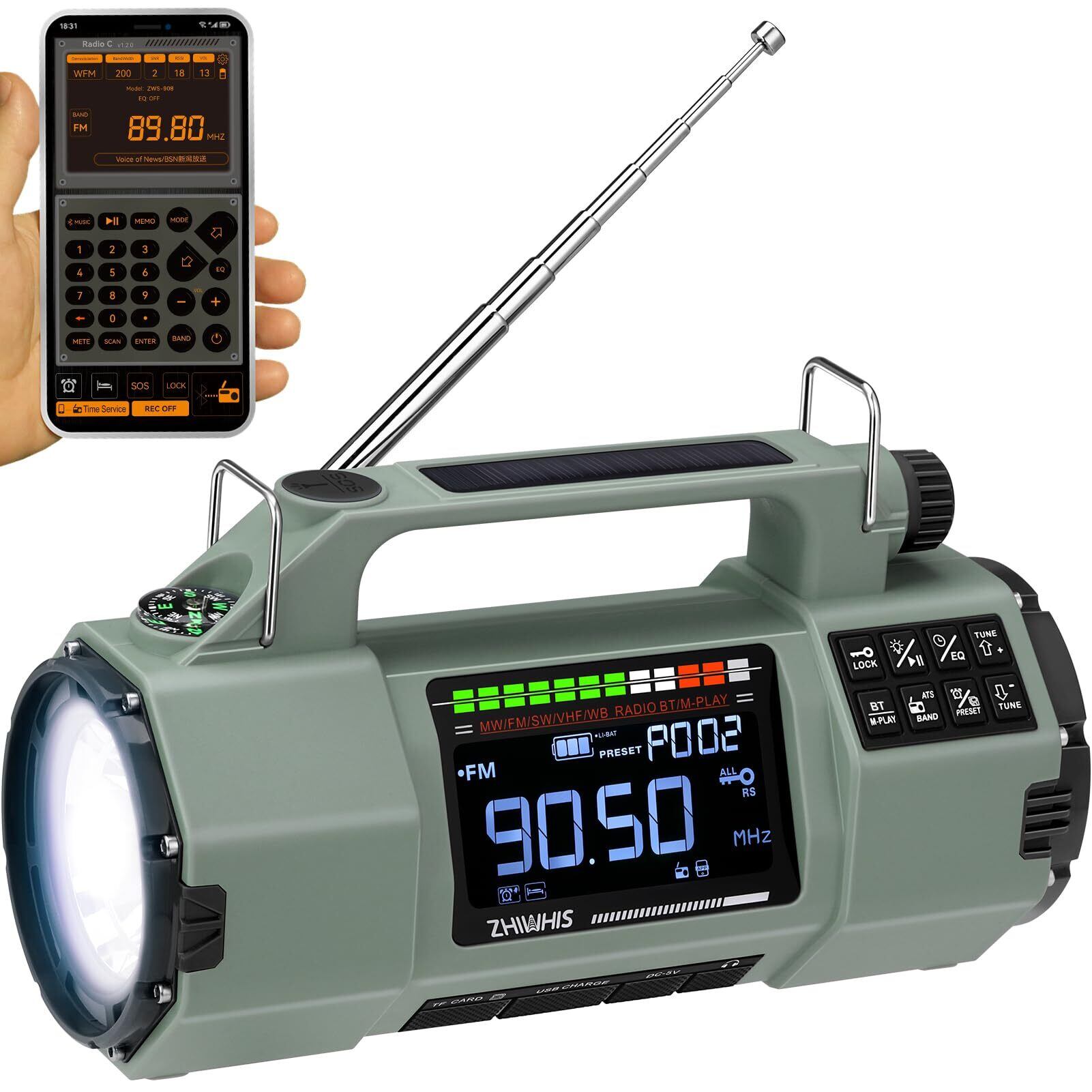 ZHIWHIS 防災ラジオ Bluetoothスピーカー/マイクロSD再生 APPコントロール/懐中電灯 VHF/FM/AM/短波/ワイドFM対応 ソーラー/手回し/USB-C充電/乾電池で使用可能 タイマー/アラーム 震災 台風緊急対策 2025新登場ZWS-908