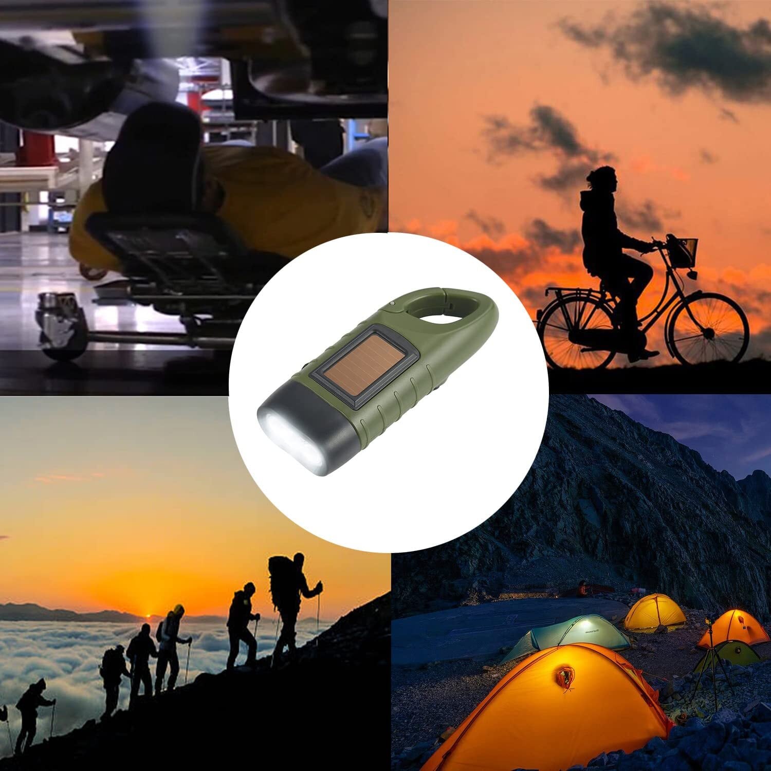 COOLEAD 手回し充電ライト LED 懐中電灯 手回し充電 ソーラー充電 小型 ハンディライト フック付き 携帯便利 防災用品 停電 地震 台風 災害 非常用 (1個入り) | 毎日発送✿はなまる
