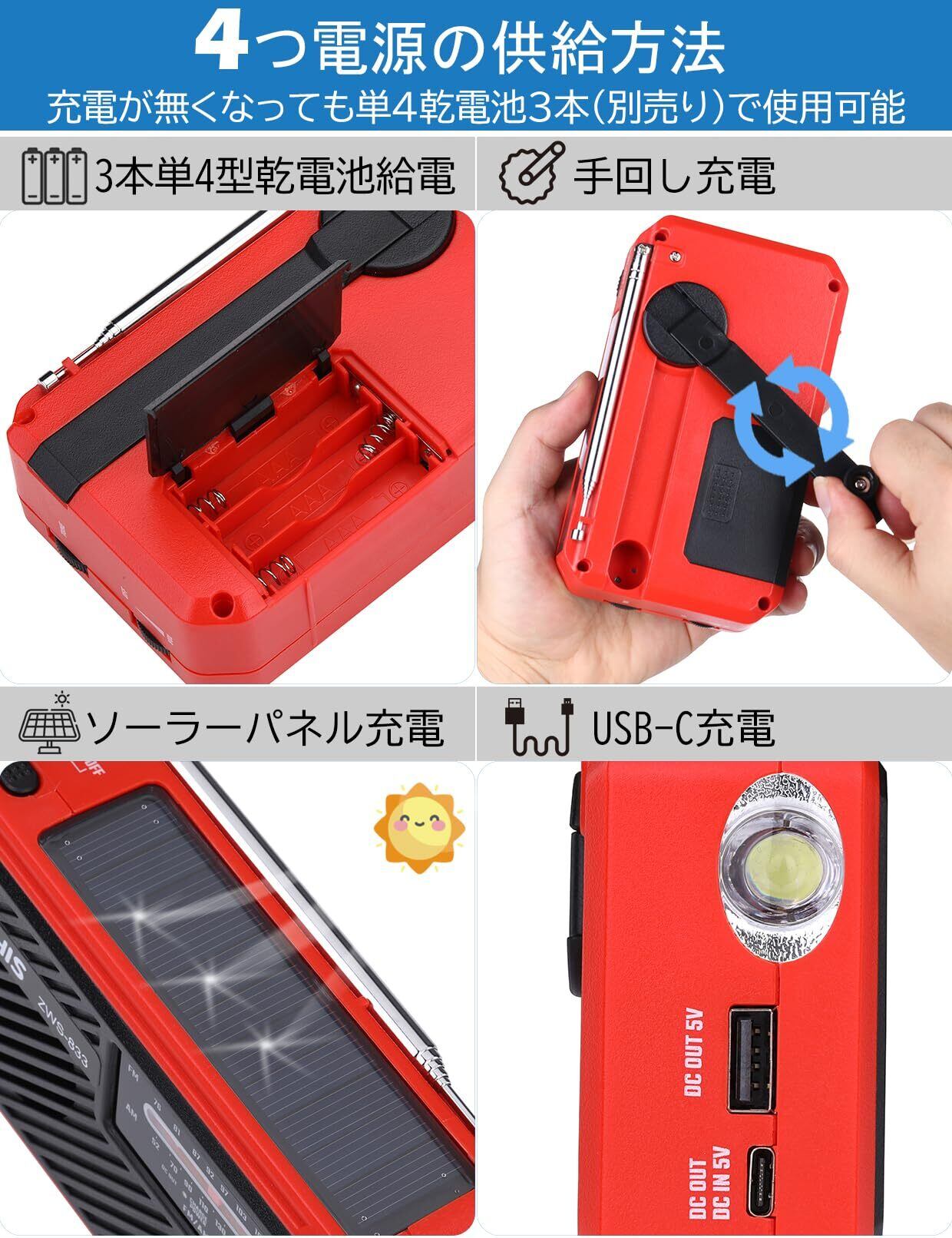 ZHIWHIS 防災ラジオ FM/AM/ワイドFM対応 懐中電灯 (手回し充電/ソーラー充電/USB-C充電/乾電池使用可能) 充電式電池式 携帯小型 震災 台風 停電緊急対策 新登場ZWS-833 | 毎日発送✿はなまる