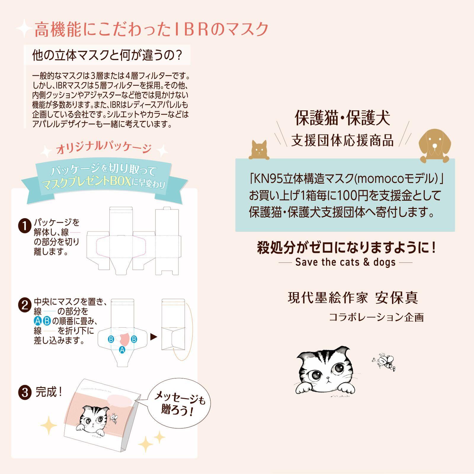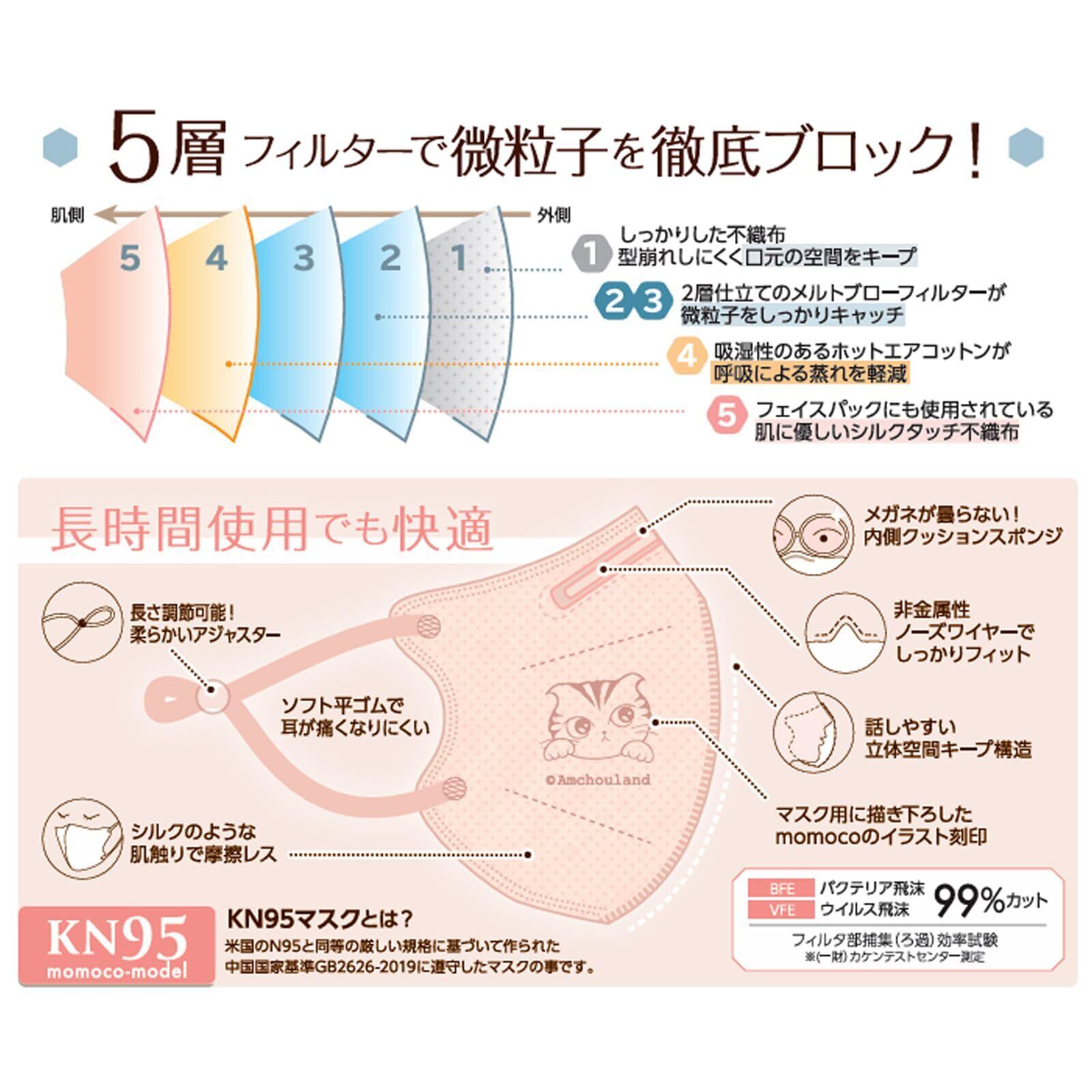 KN95マスク momoco マスク 不織布 個包装 5層 不織布 立体構造 通気性 ノーズスポンジ付き メガネが曇らない PM2.5 花粉 飛沫対応 CNAS機関認証済み