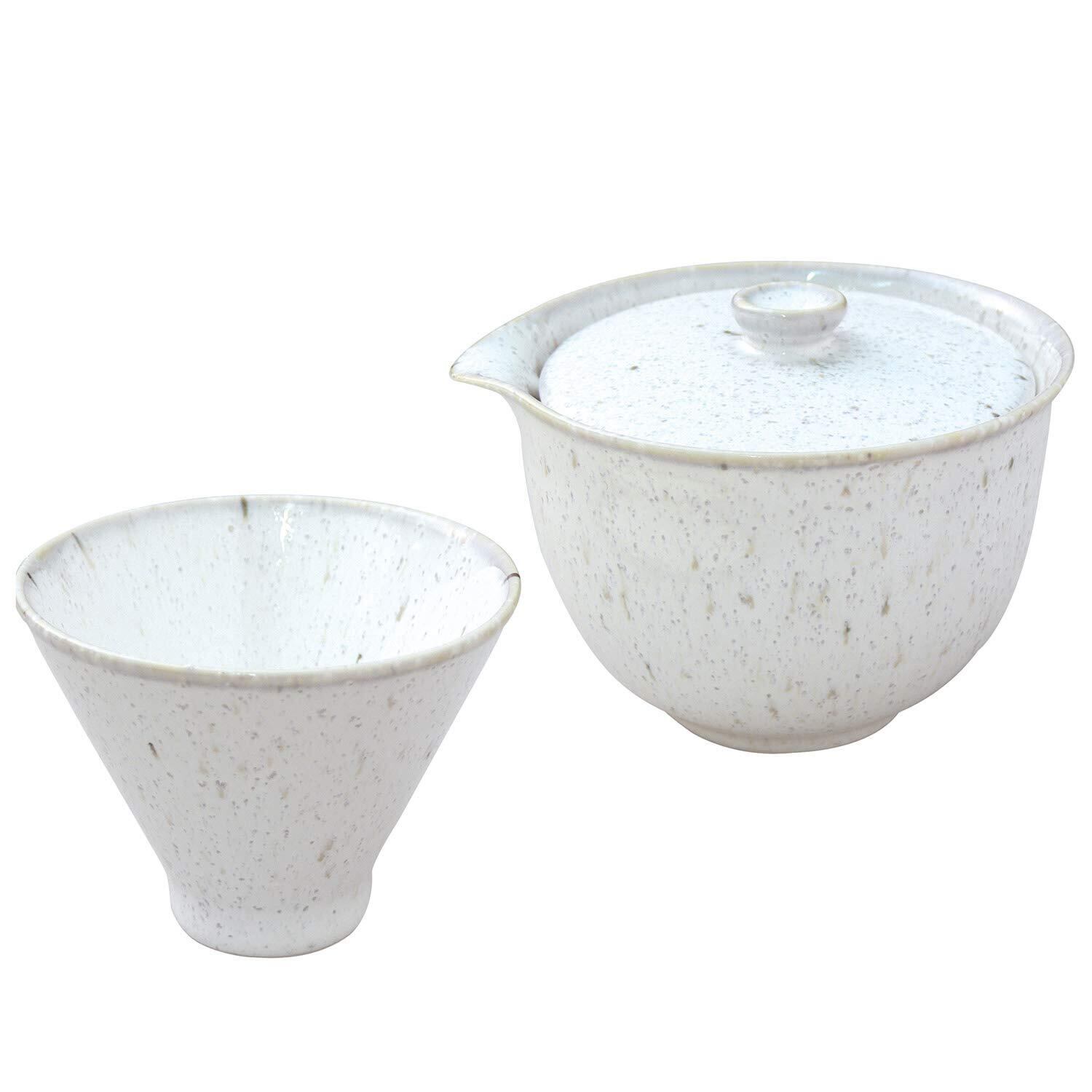 スズ木 美濃焼 宝瓶 急須・湯呑 セット 白釉窯変 白 7127-0570