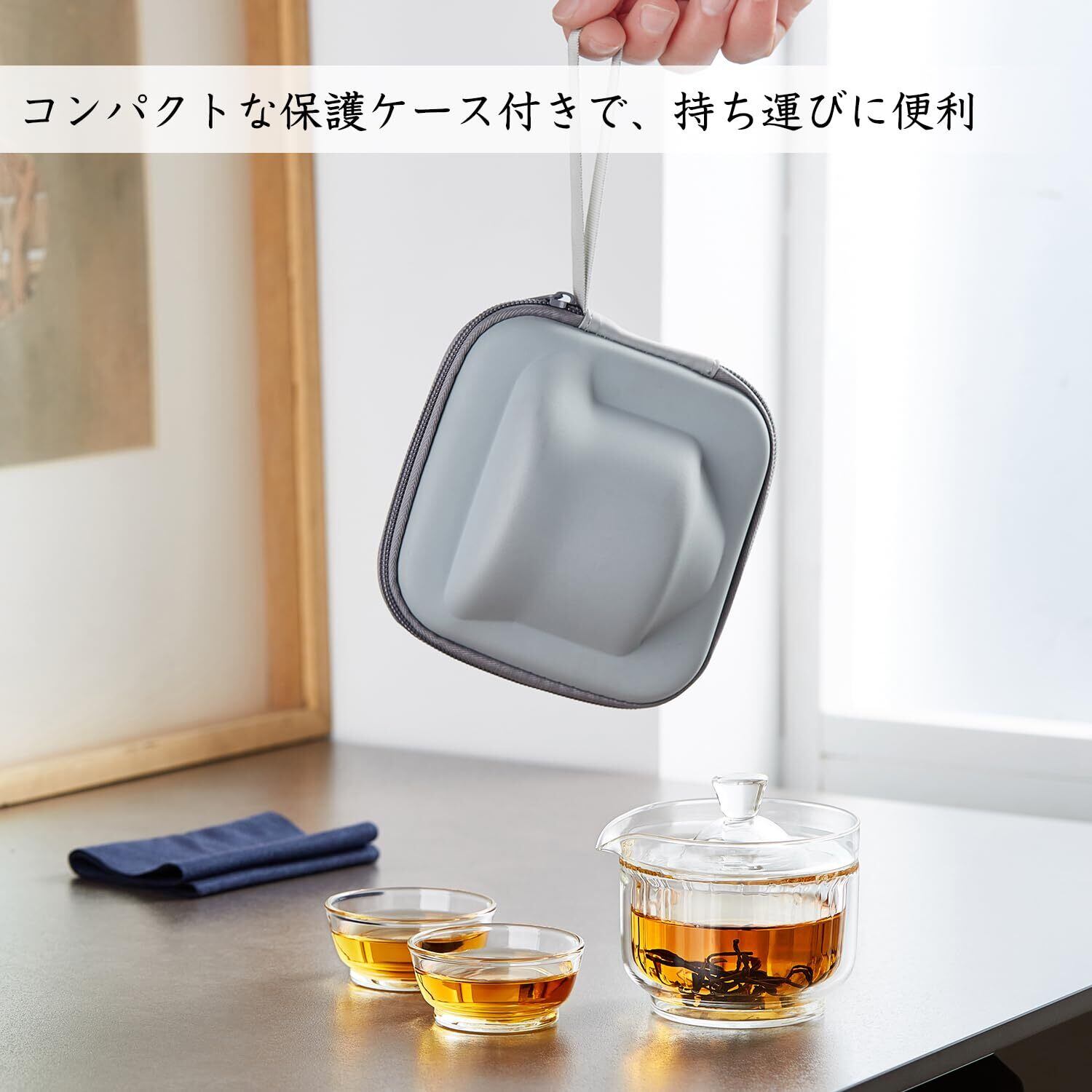 ポカロティー 旅行ティーセット 耐熱ガラス ダブルウォール 急須 210ml・湯吞み二客セット 45ml 二重構造 茶器セット 保護ケース付 携帯便利 電子レンジ対応 直火対応 熱湯可 一人用 中国茶 日本茶 紅茶 緑茶 玉露 コンパクト 功夫茶 おうちティータイム