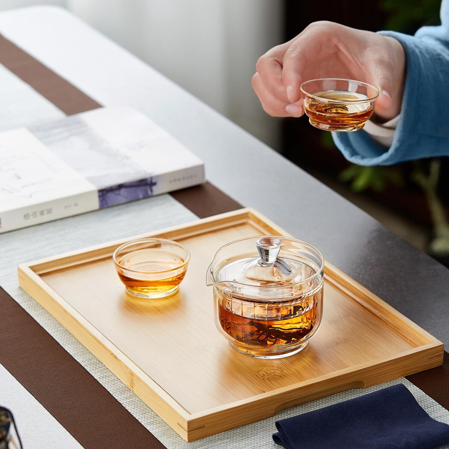 持ち運びしやすく、収納も簡単:ティーポットと2つのカップを重ねて保護ケースに収納可能な設計で、場所を取らず、アウトドアや登山、来客時のおもてなし、一人時間を楽しむ際にも最適です。透明なガラスを採用しているため、お茶の色の変化や残量がひと目でわかり、落ち着いた飲茶のひとときを演出します。さらに、蓋には一体型のフィルター穴があり、片手で簡単に注げて、最後の一滴まで無駄なくお楽しみいただけます。