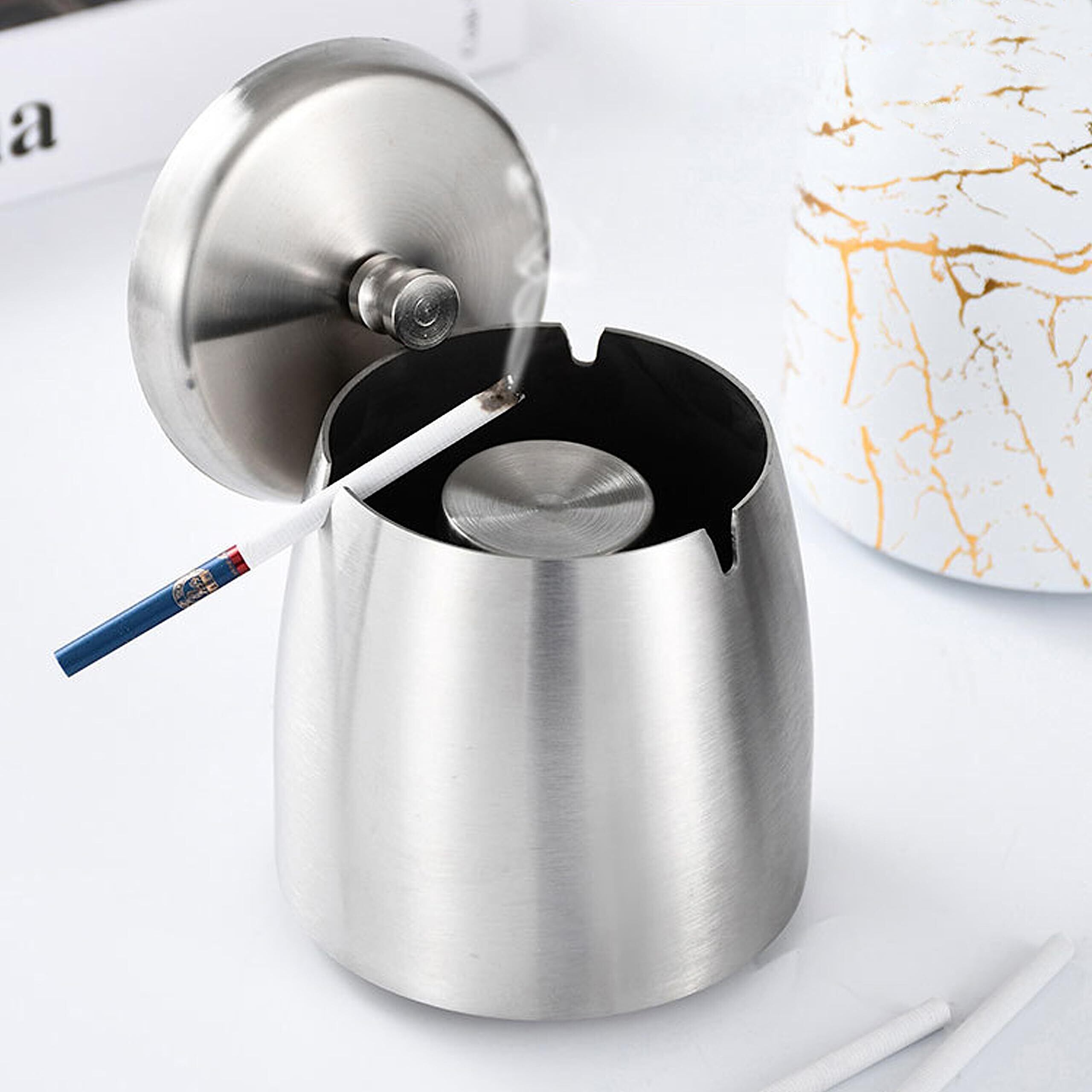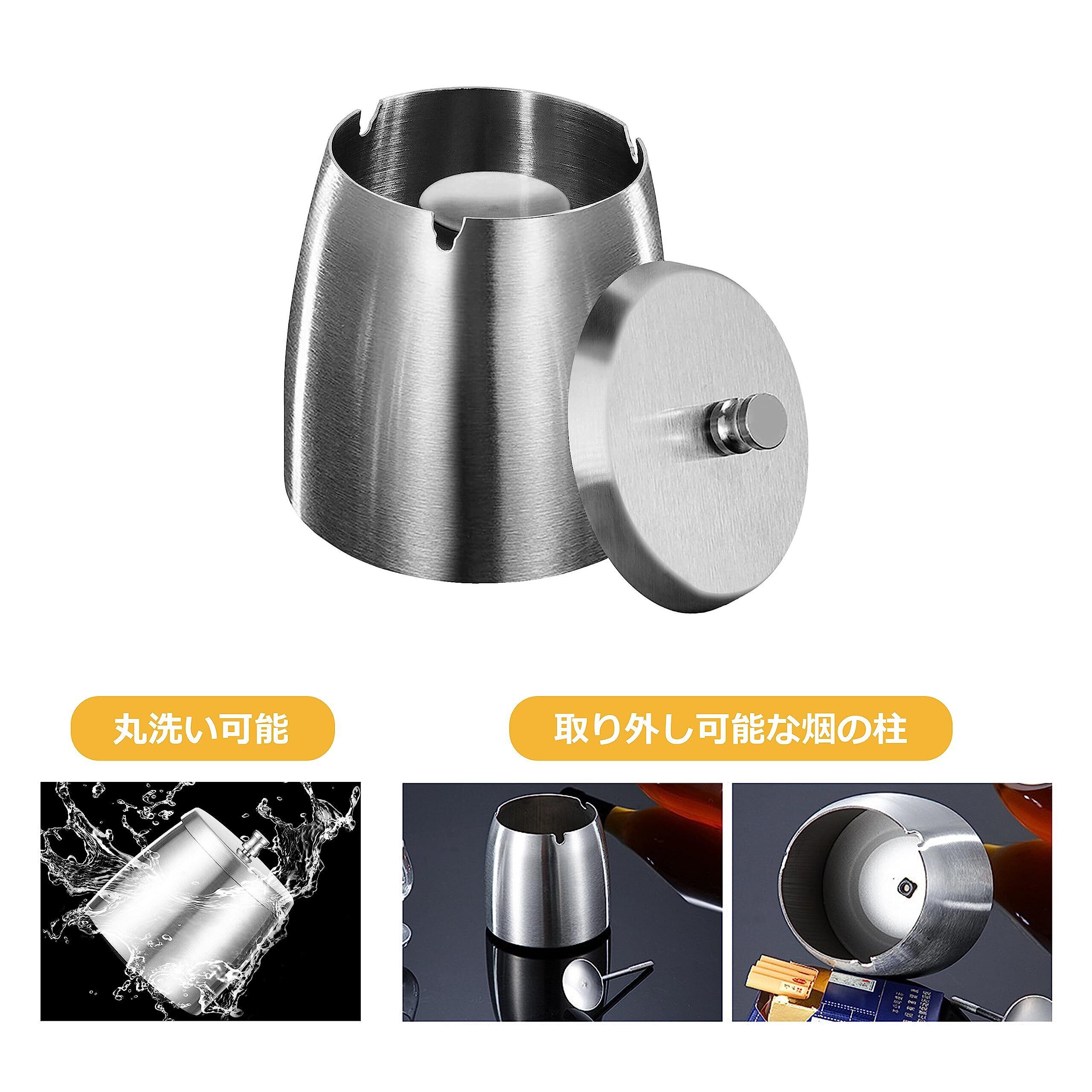 【多機能蓋】:密封性フタ付き、タンコ臭いが気にならない,防風設計で、灰が飛び散らない テーブルや床を汚すことを心配せずに灰が風の中を飛ぶことは心配なし。