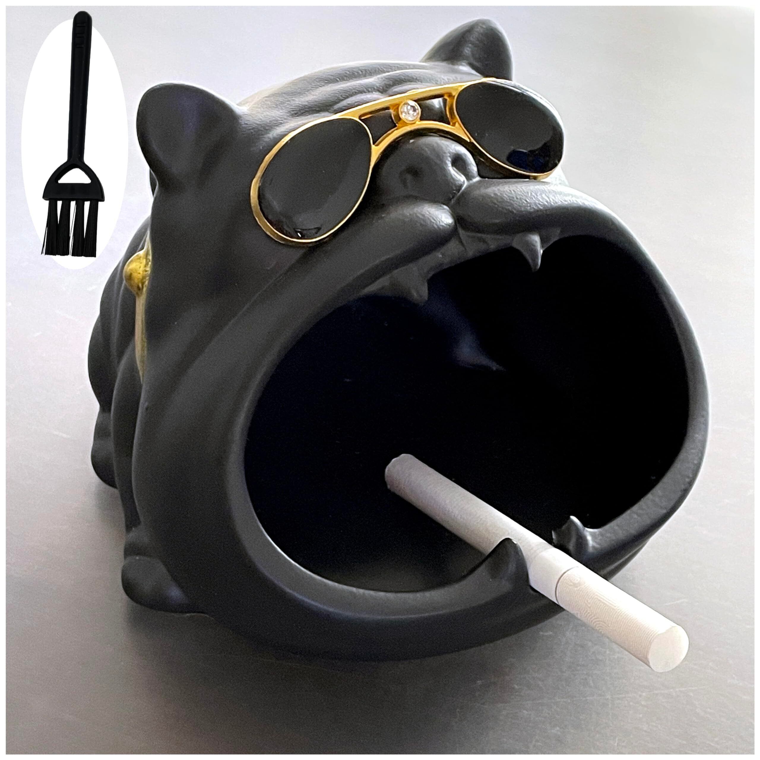 灰皿 犬 フレンチブルドッグ 卓上灰皿 大容量 おしゃれ かわいい 陶器 家用 (ブラック)