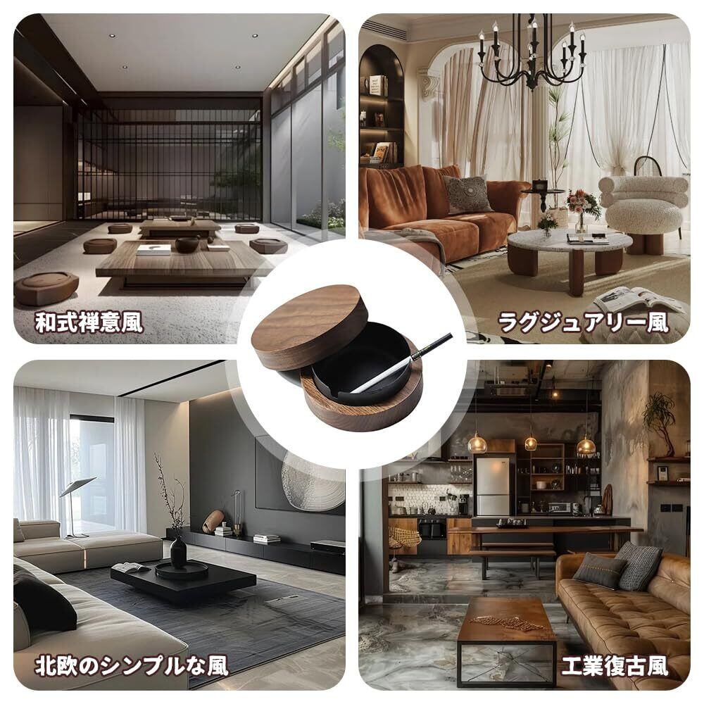 【蓋付き設計】木製蓋を備え、煙灰の飛散と異臭の拡散を効果的に遮断し、室内の空気を清潔に保ち、蓋の設計密着度が高く、簡単に蓋を閉め、より快適な使用体験をもたらす。