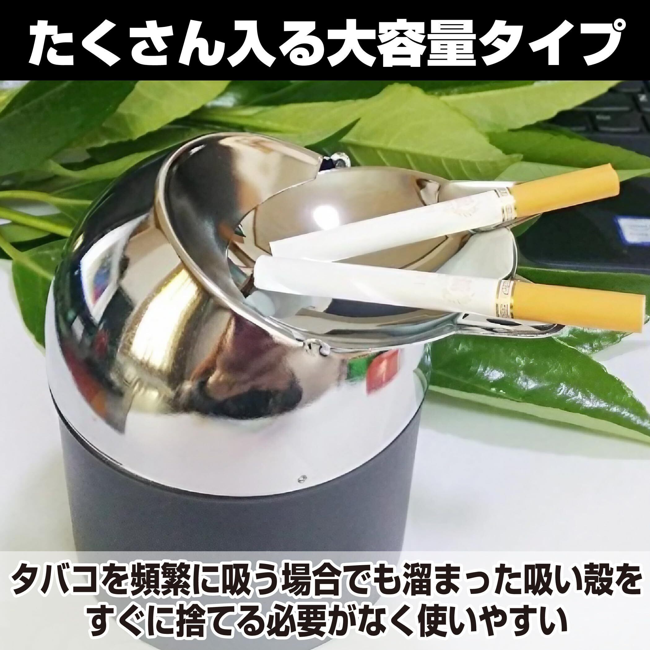 たくさん入る大容量タイプ:こちらの灰皿は大容量タイプですので、タバコの吸い殻をたくさん入れることができます。タバコを頻繁に吸う場合でも溜まった吸い殻をすぐに捨てる必要がありませんので、使いやすいです。