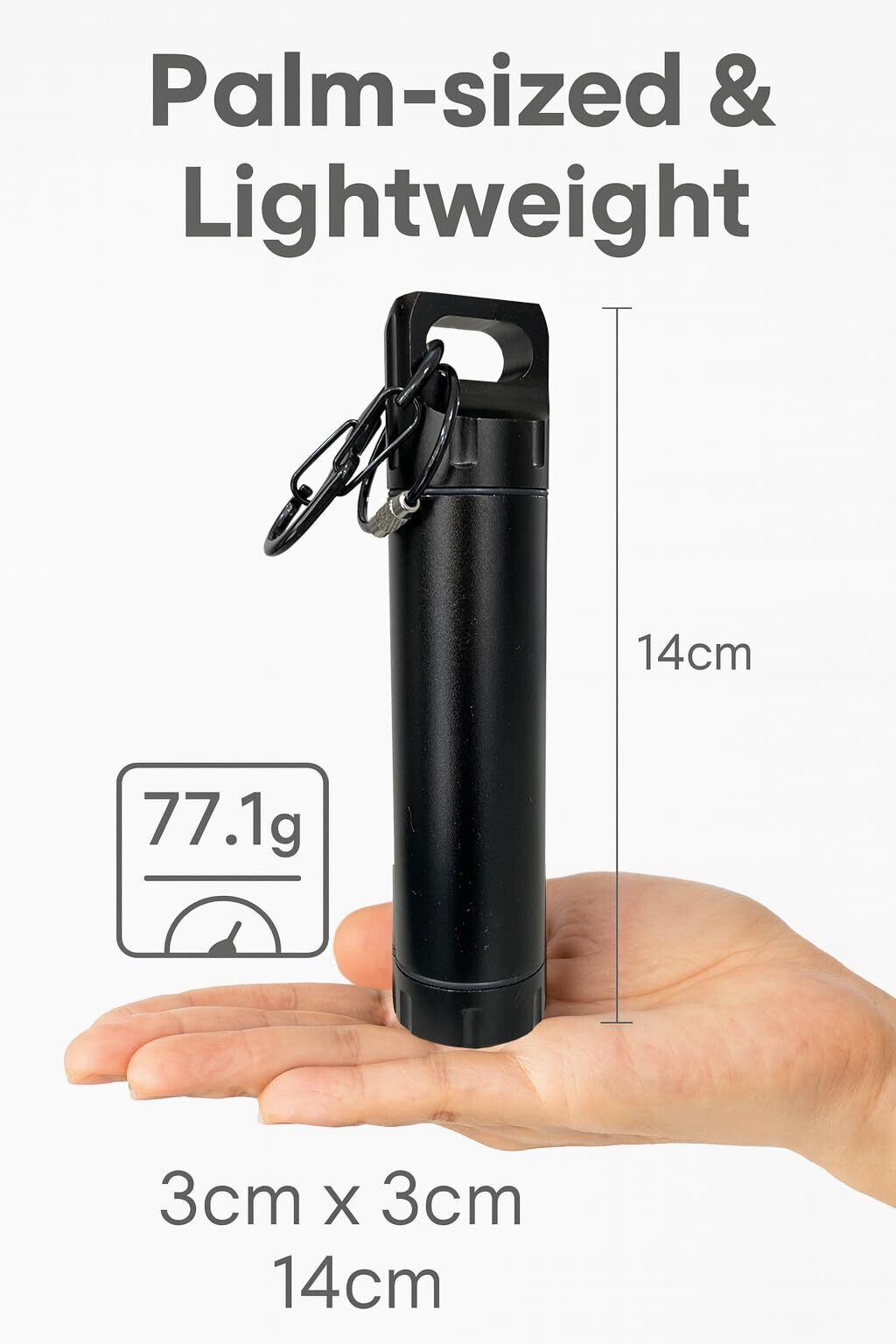 この携帯ケースは、高品質なアルミ素材を使って作られており、軽くて持ちやすいのにとても丈夫です。湿気や塩分が多い場所でも長く使えるうえ、金属特有のイヤな匂いもなく、水で洗えるのでいつでも清潔に保てます。さらにゴムパッキンでしっかり密閉されているため、雨や汗、湿気から中身を守り、水に落としても中の物が濡れる心配がありません。コンパクトサイズでキーリングやカラビナも付いているので、登山やキャンプ、釣り、バイクなどのアウトドアはもちろん、通勤や温泉、プール、車内での保管や災害時の応急用としても便利です。USBや薬、現金、アクセサリーなどを入れて安心して持ち歩くことができ、幅広いシーンで役立ちます。