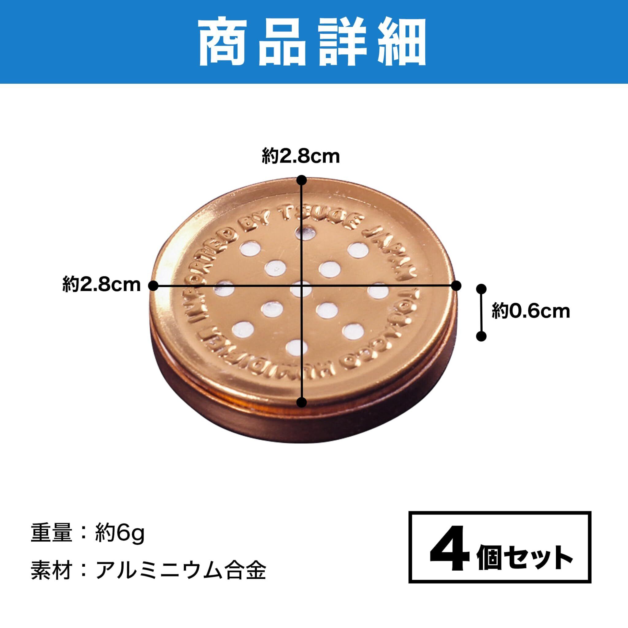 セット内容:4個セット サイズ:約2.8×2.8×0.6cm 重量:約6g 素材:アルミニウム合金 ※モニターの環境等により、色の見え方に若干差が生じる場合がございます。