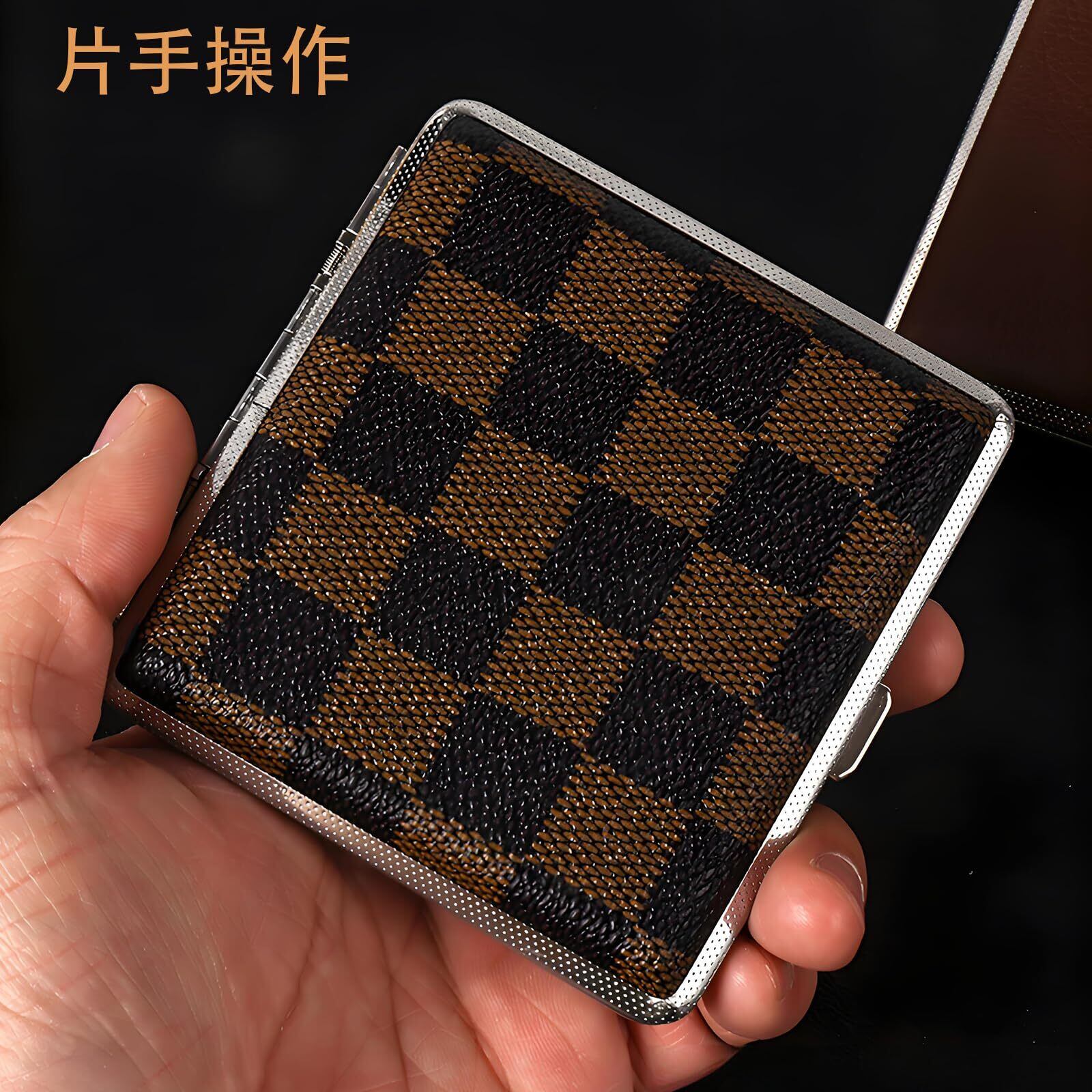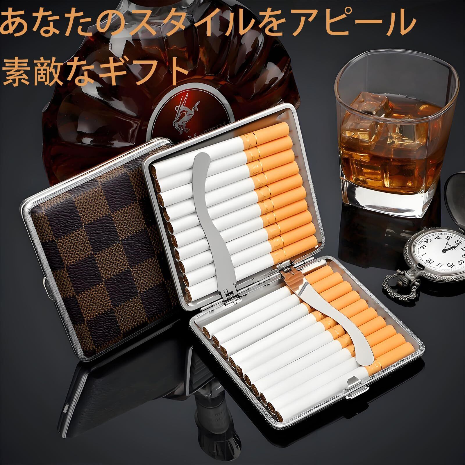 タバコケース シガレットケース 手巻きタバコ用 シガレットホルダー 20 本入 金属+PU 革調 鉄クリップ款 レトロチェック柄 超薄 防潮 防水 防圧 サビにくい 押し込み式スイッチ 180 度開閉 タバコ不潰れ 不折れ ポータブル 男性用ギフト(タバコなし) | 毎日発送✿はなまる