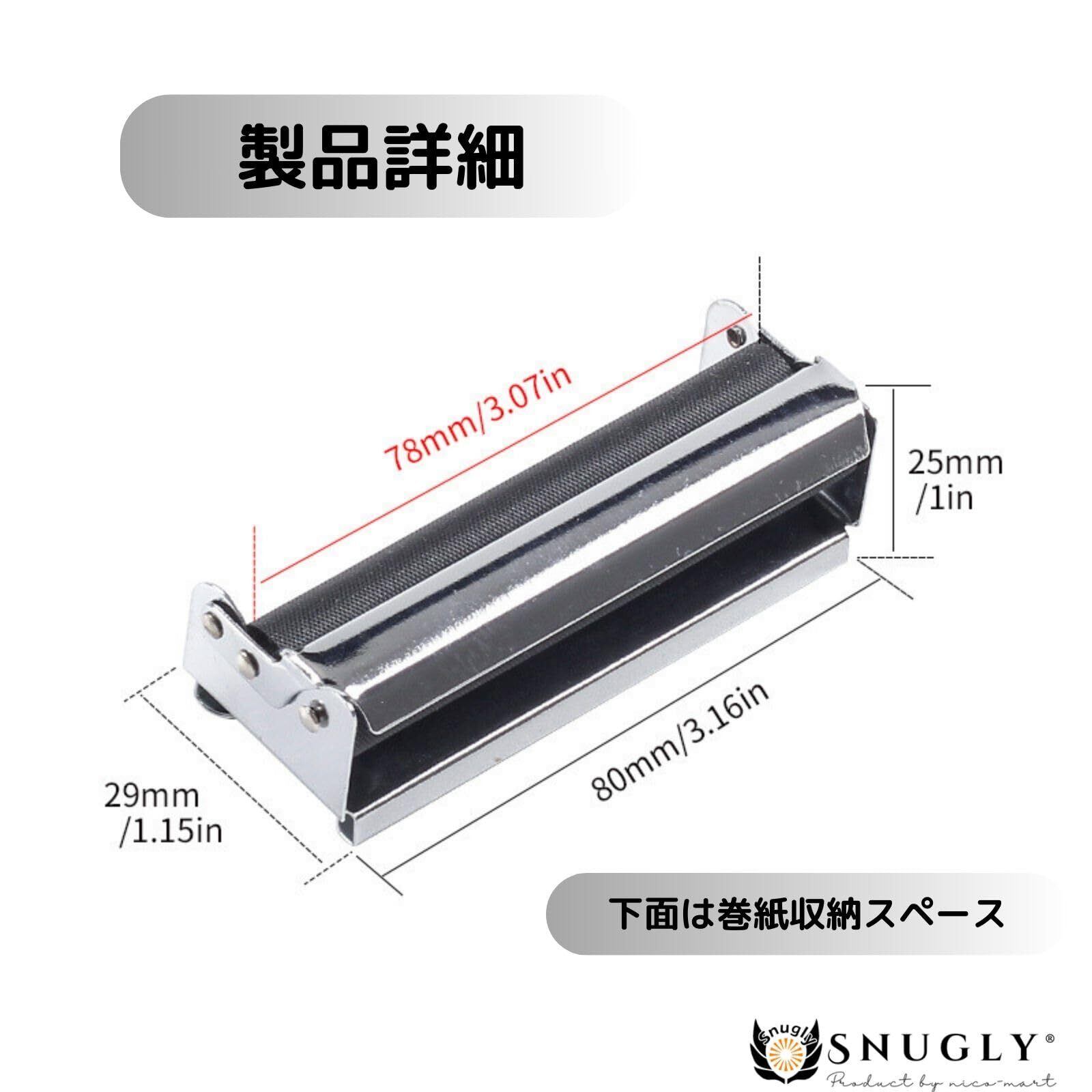 手巻きタバコ愛好者のために、snuglyシガレットローリングマシーンが登場しました。この驚くほど簡単で美しい巻き方は、あなたのタバコ体験を向上させます。幅広い巻紙に対応しており、70mmのレギュラーサイズから78mmのミディアムサイズまで、あらゆる巻紙に対応しています。