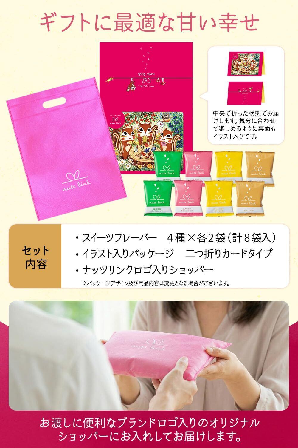 ナッツリンク ナッツ ギフト スイーツ 8袋 母の日 プレゼント 豆菓子 セット おしゃれ お取り寄せ 個包装 お菓子 手土産 小分け メッセージカード 手さげ袋付き