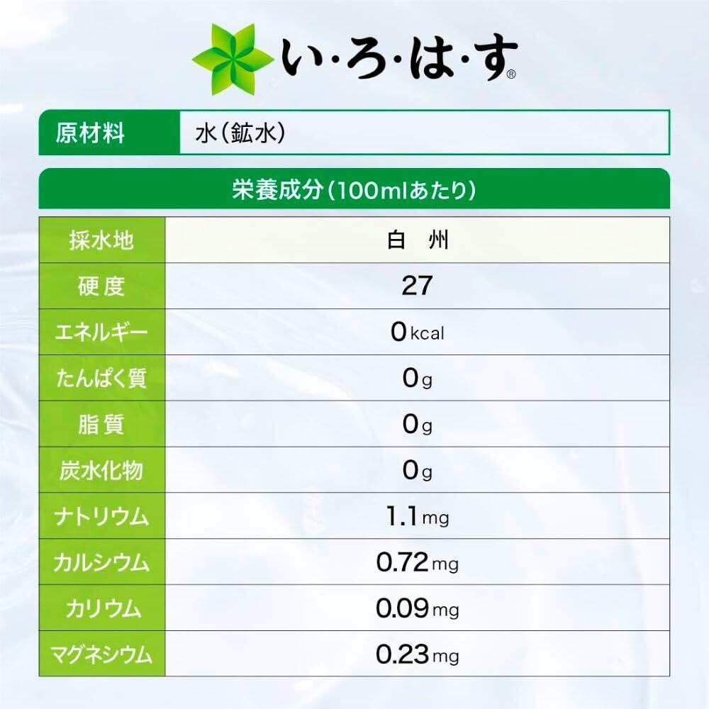 厳選された日本のおいしい天然水『い・ろ・は・す』は、一滴一滴、森が育んだ天然水を、コカ・コーラ独自の厳しい品質管理を経て、みなさまにお届けしています。 本製品は、リサイクル時にラベルをはがす手間がないのはもちろんのこと、外でも持ち運びしたくなる、水の流れをイメージした清らかな形状と、100%リサイクルペットボトルを使用した、人にも環境にもやさしいラベルレスボトルです。 ぜひ、日常の水分補給のためのストックやまとめ買いに、『い・ろ・は・す』のラベルレスボトルをぜひお試しください。