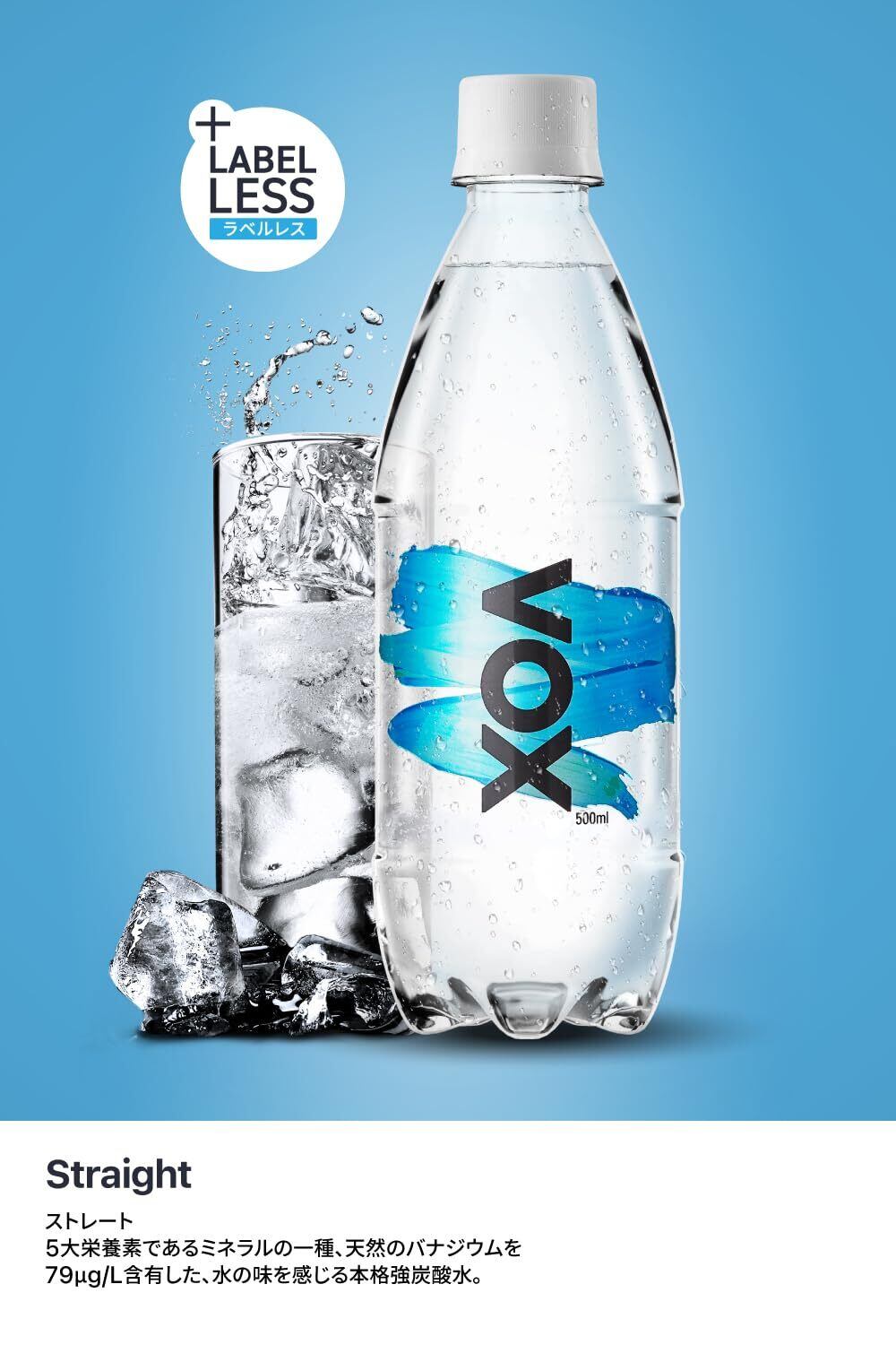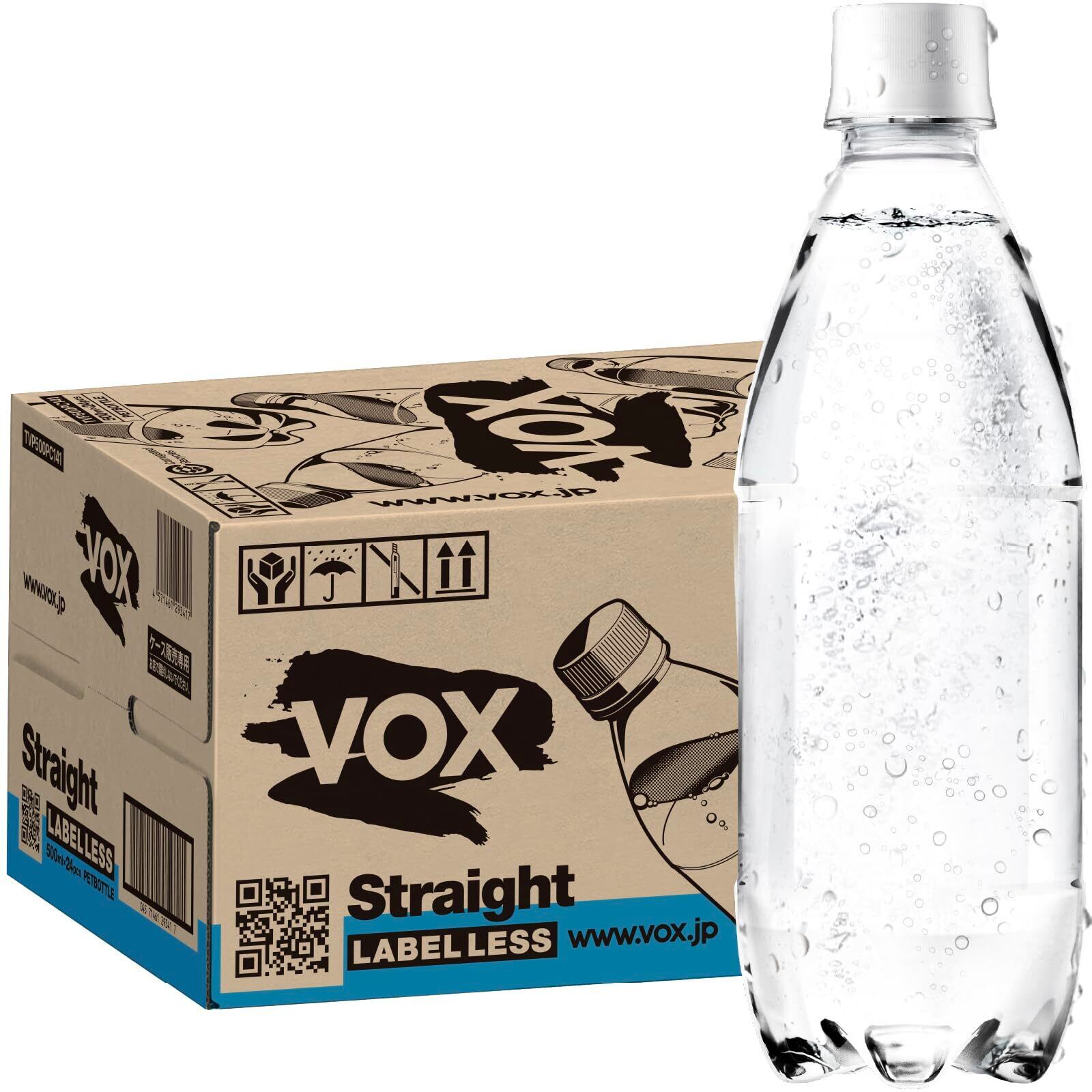 VOX(ヴォックス) 強炭酸水 ストレート 無糖 500ml ×24本 ラベルレス