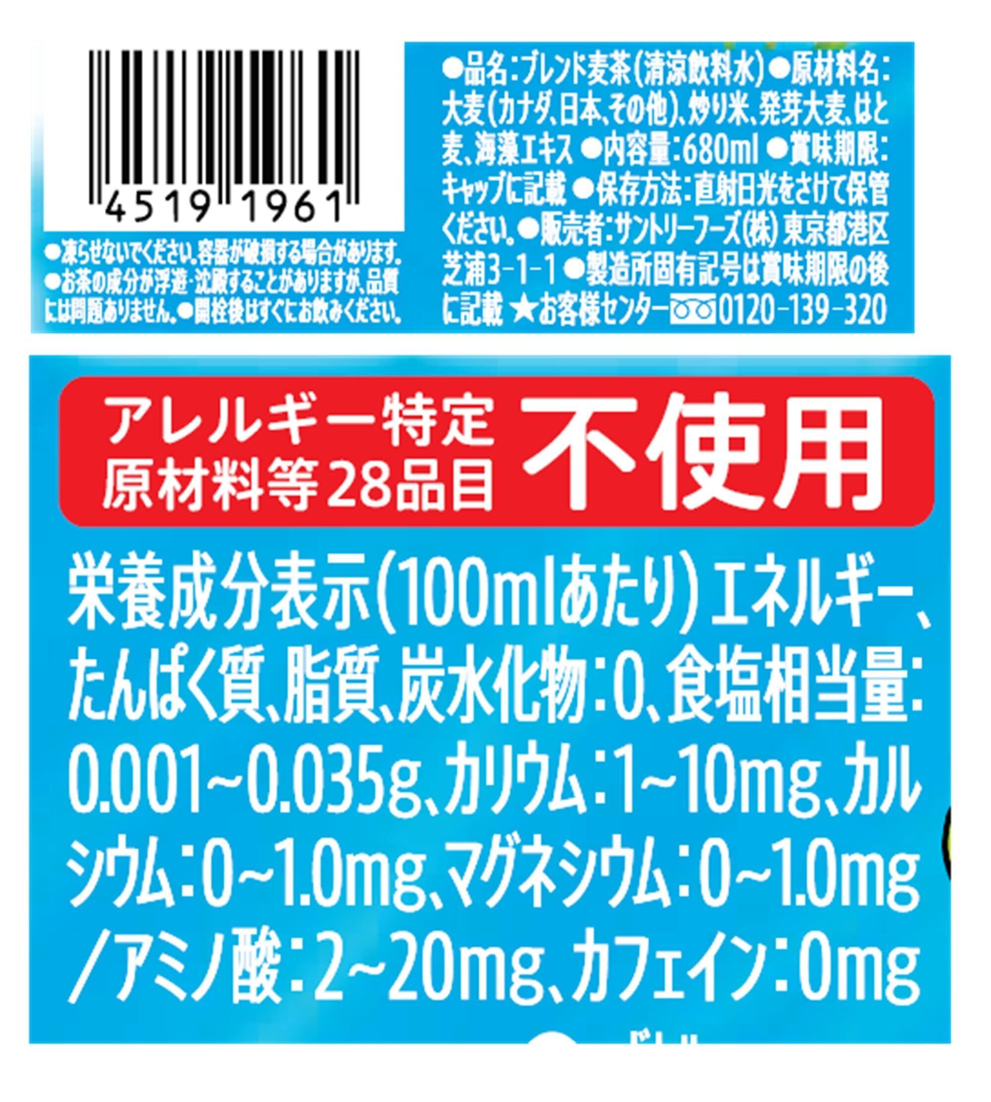 原材料:大麦(カナダ、日本、その他)、炒り米、発芽大麦、はと麦、海藻エキス