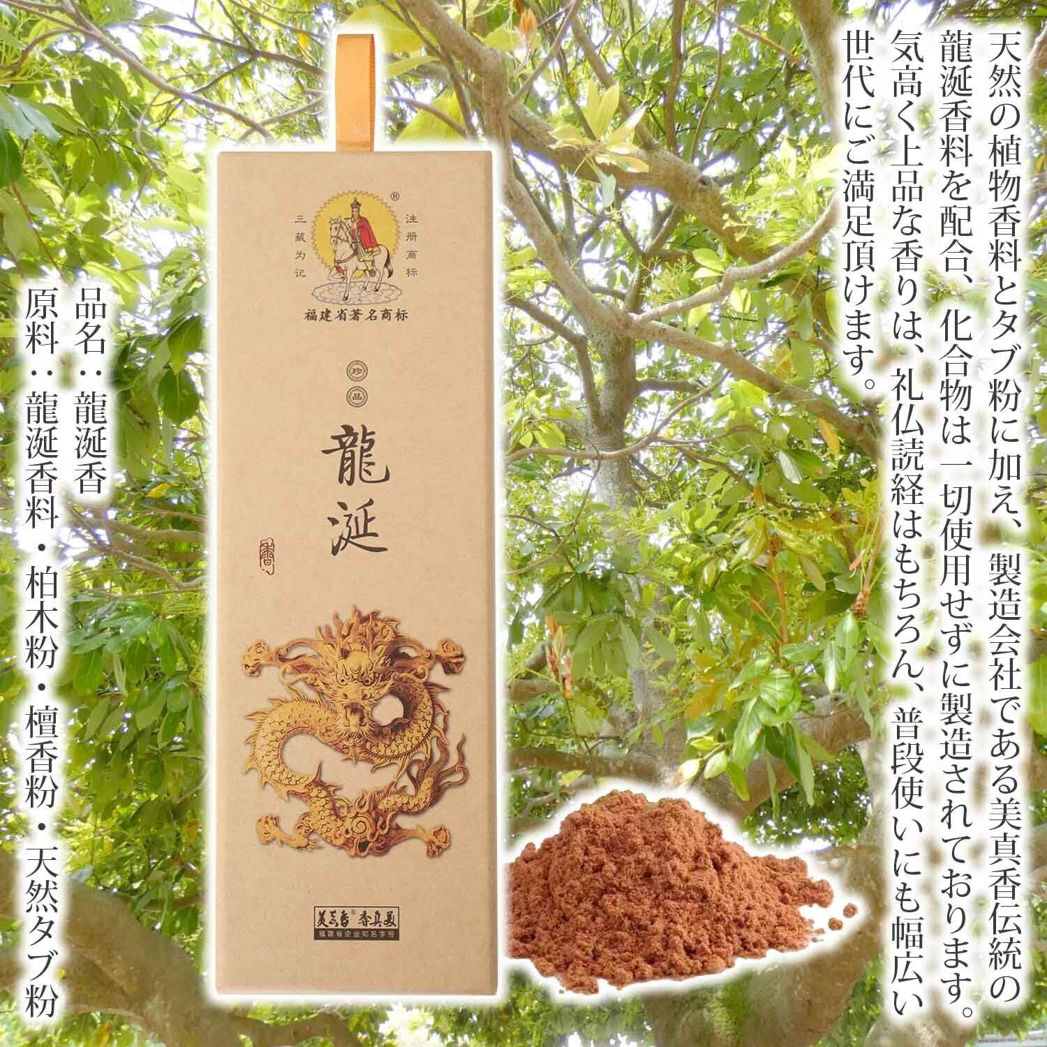 【龍涎香の特徴】天然の植物香料とタブ粉に加え、製造会社である美真香伝統の龍涎香料を配合、化合物は一切使用せずに製造されております。 気高く上品な香りは、礼仏読経はもちろん、普段使いにも幅広い世代にご満足頂けます。