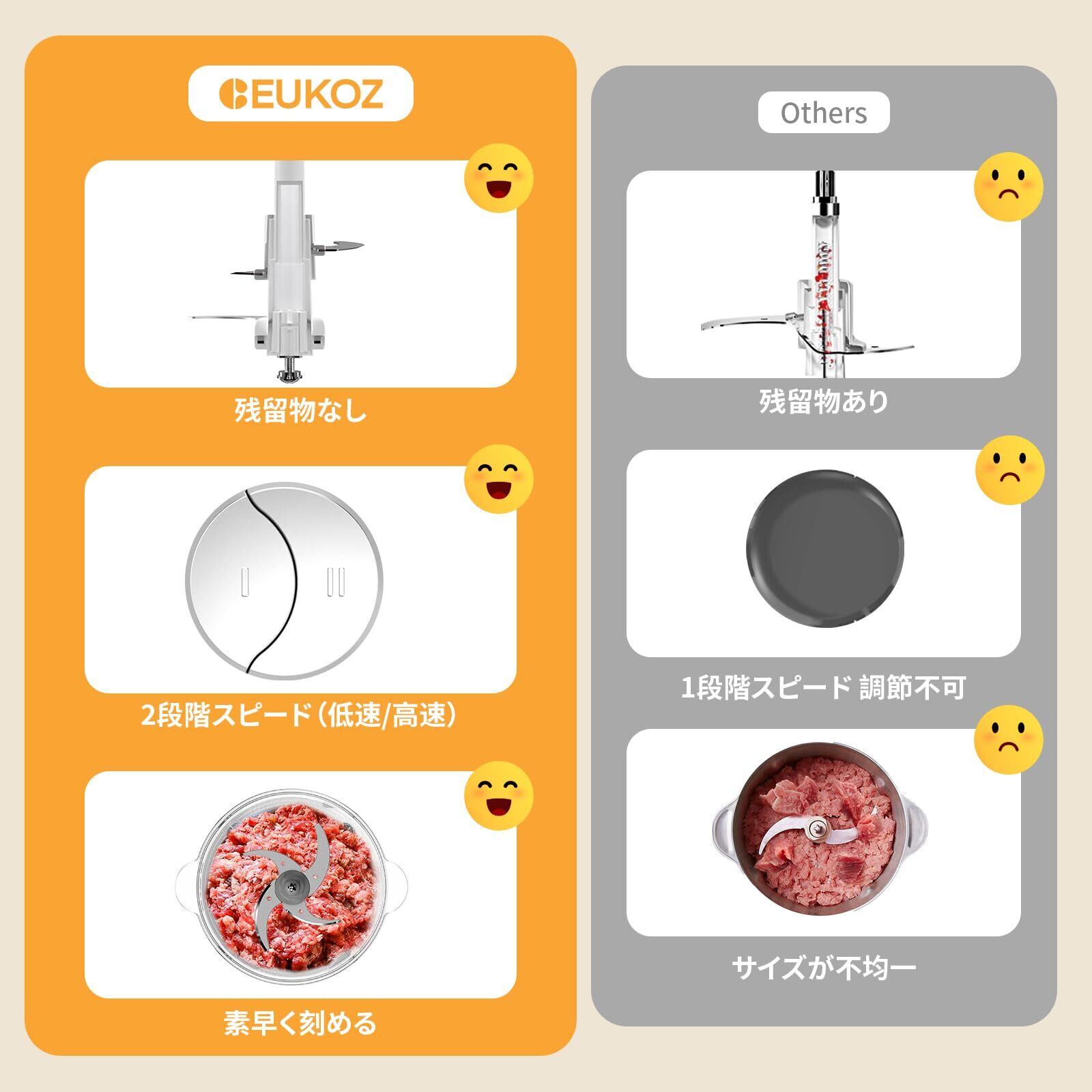 【1台5役&料理の時短に大活躍】料理が苦手な方でも簡単に使用できるCEUKOZフードプロセッサー。「刻む・混ぜる・潰す・砕く・粗おろし」工程は、本製品1台があればスピーディーかつ簡単に! 忙しい毎日、料理はなるべく時間をかけずにぱぱっと簡単に作ることができます。料理時間を明らかに短縮して、家事で忙しい主婦の強い味方です!