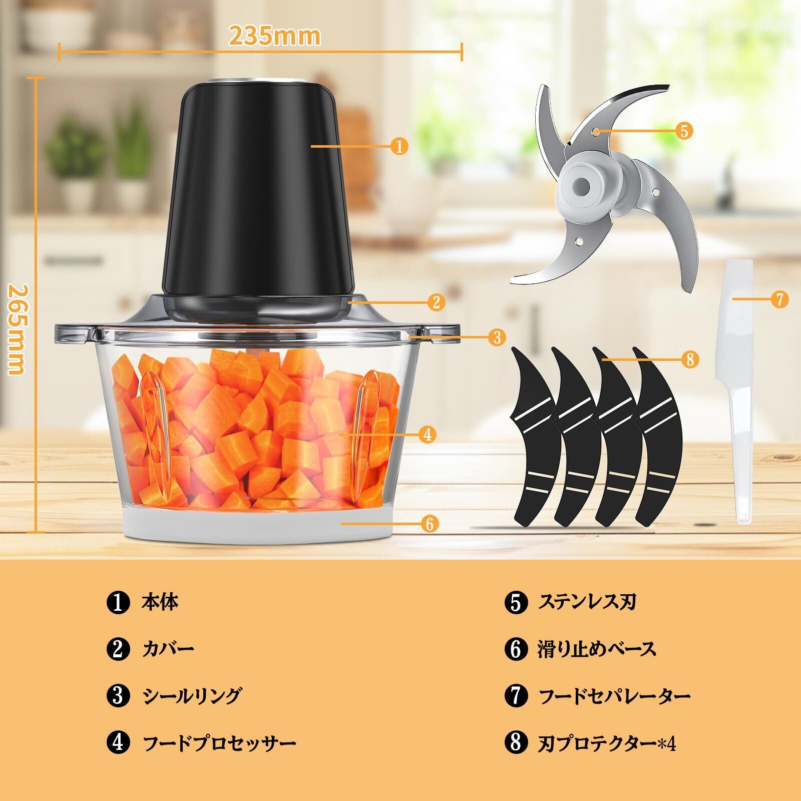 フードプロセッサー 2L大容量 CEUKOZ 1台5役 (刻む・混ぜる・潰す・砕く・粗おろし) 500Wハイパワー 2段階スピード 4枚刃カッター フードチョッパー 氷も砕ける ブレンダー 離乳食 電動 挽肉 みじん切り フードミキサー 人気 家庭用 洗いやすい | 毎日発送✿はなまる